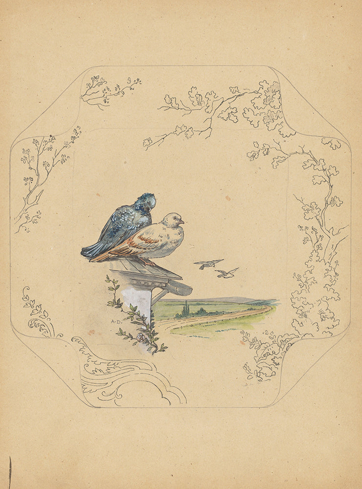 Design for Board of the Model "Square" with Pigeons (C. 1875 - C. 1880)