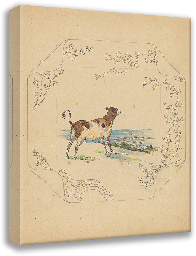 / Design for Board of the Model "Square" with Cows Aan Zee (C. 1875 - C. 1880)