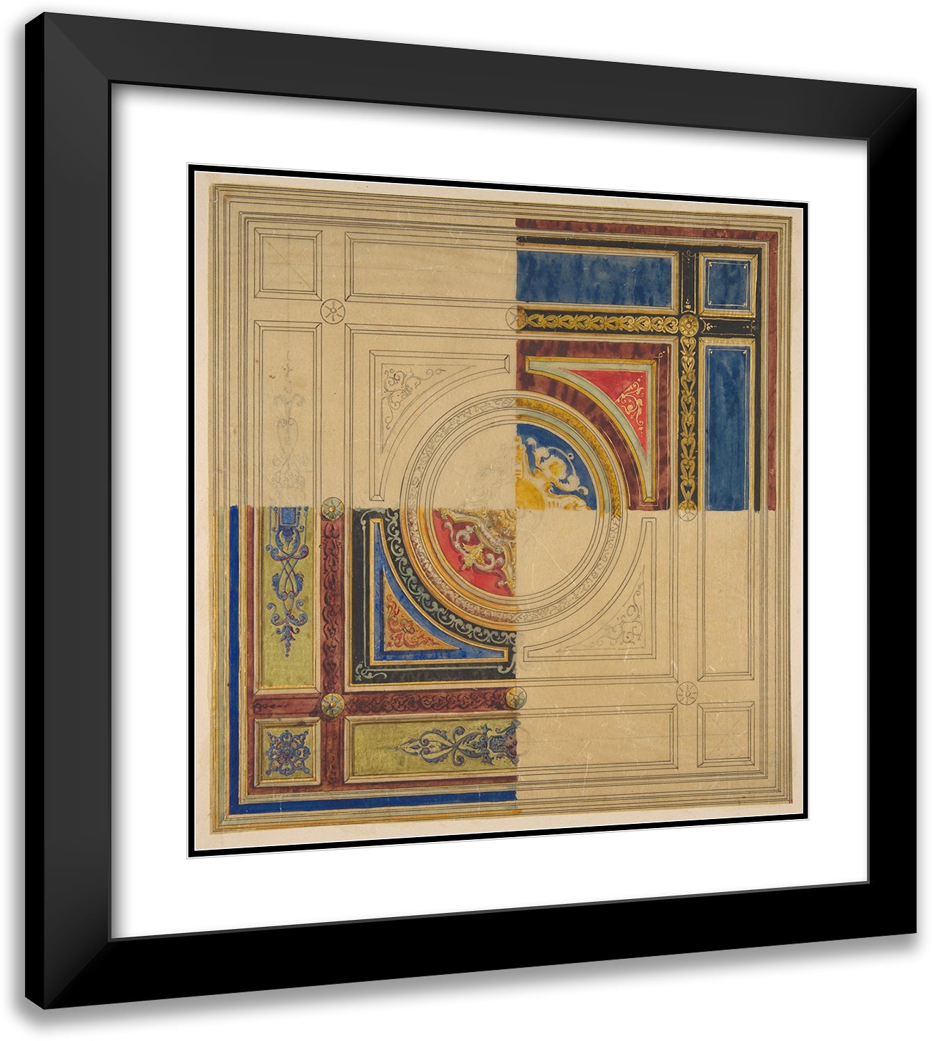 Design for a Paneled Ceiling with Alternative Decorations (19th Century)