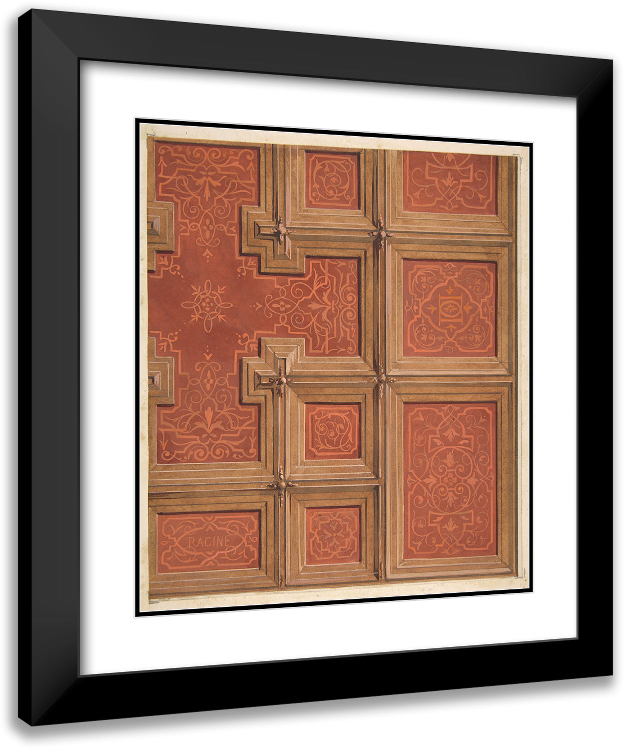 / Design for the Decoration of a Coffered Ceiling Ornamented with the Name ‘Racine’ and Entwined Letters; Dd (19th Century)