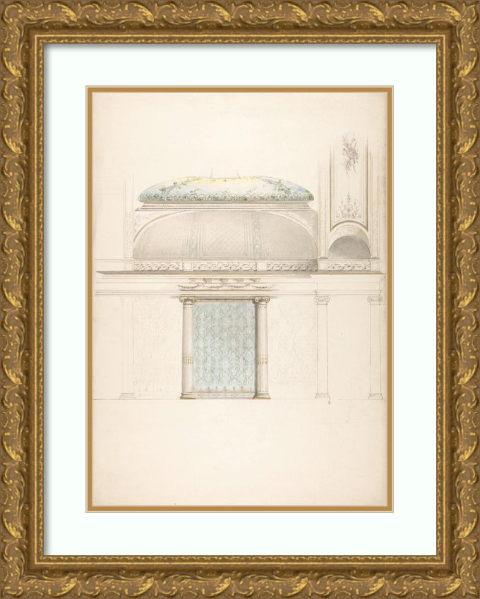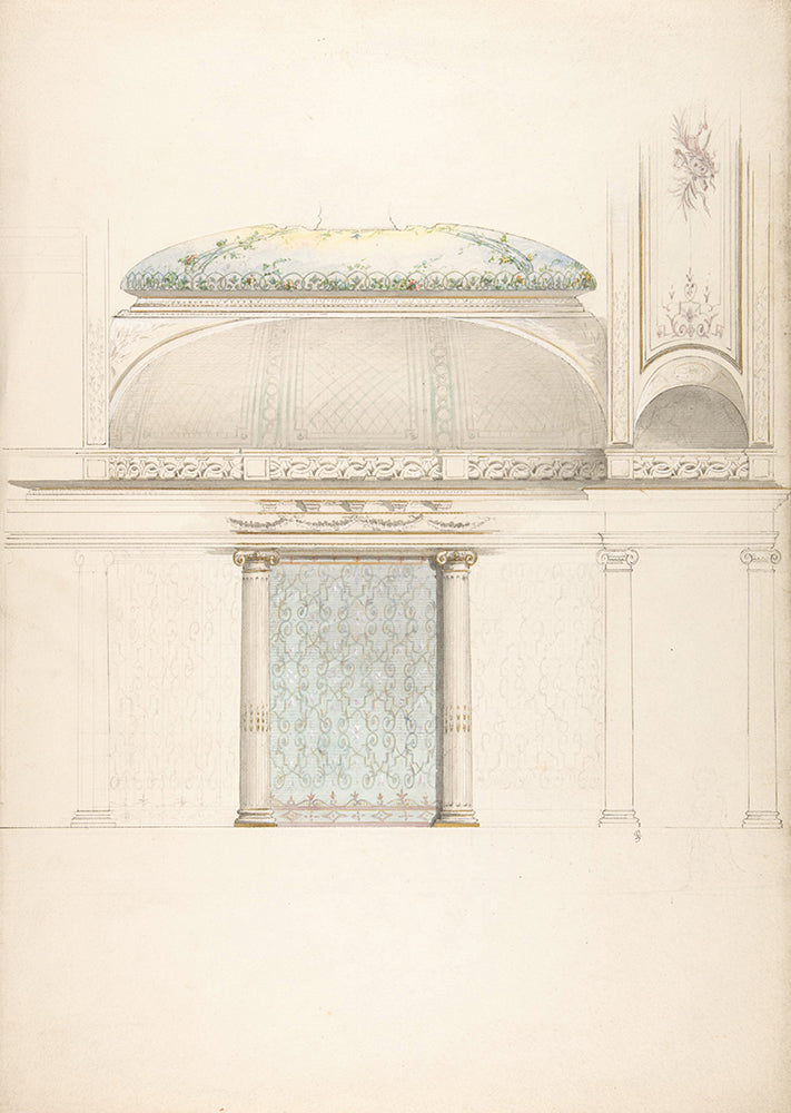 / Elevation and Transverse Section of a Domed and Colonnaded Hall (19th Century)