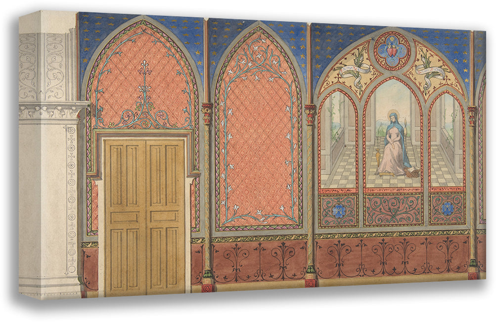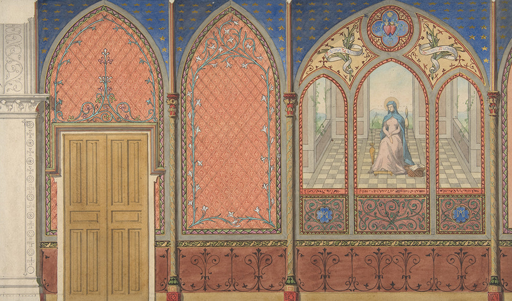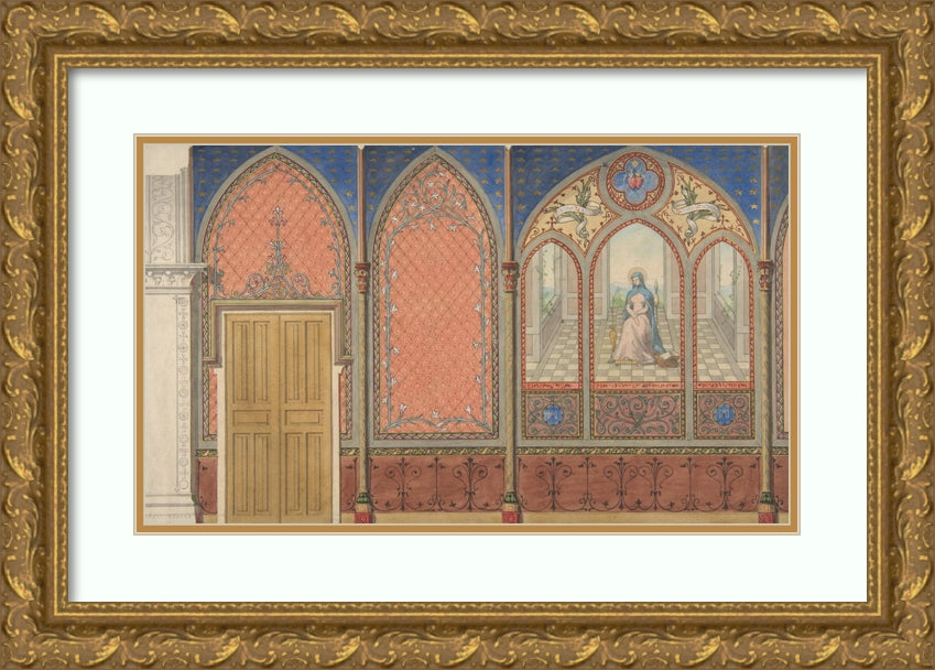 / Elevation of a Church or Chapel with Designs for Ornament and a Painted Triptych of the Virgin Mary (19th Century)