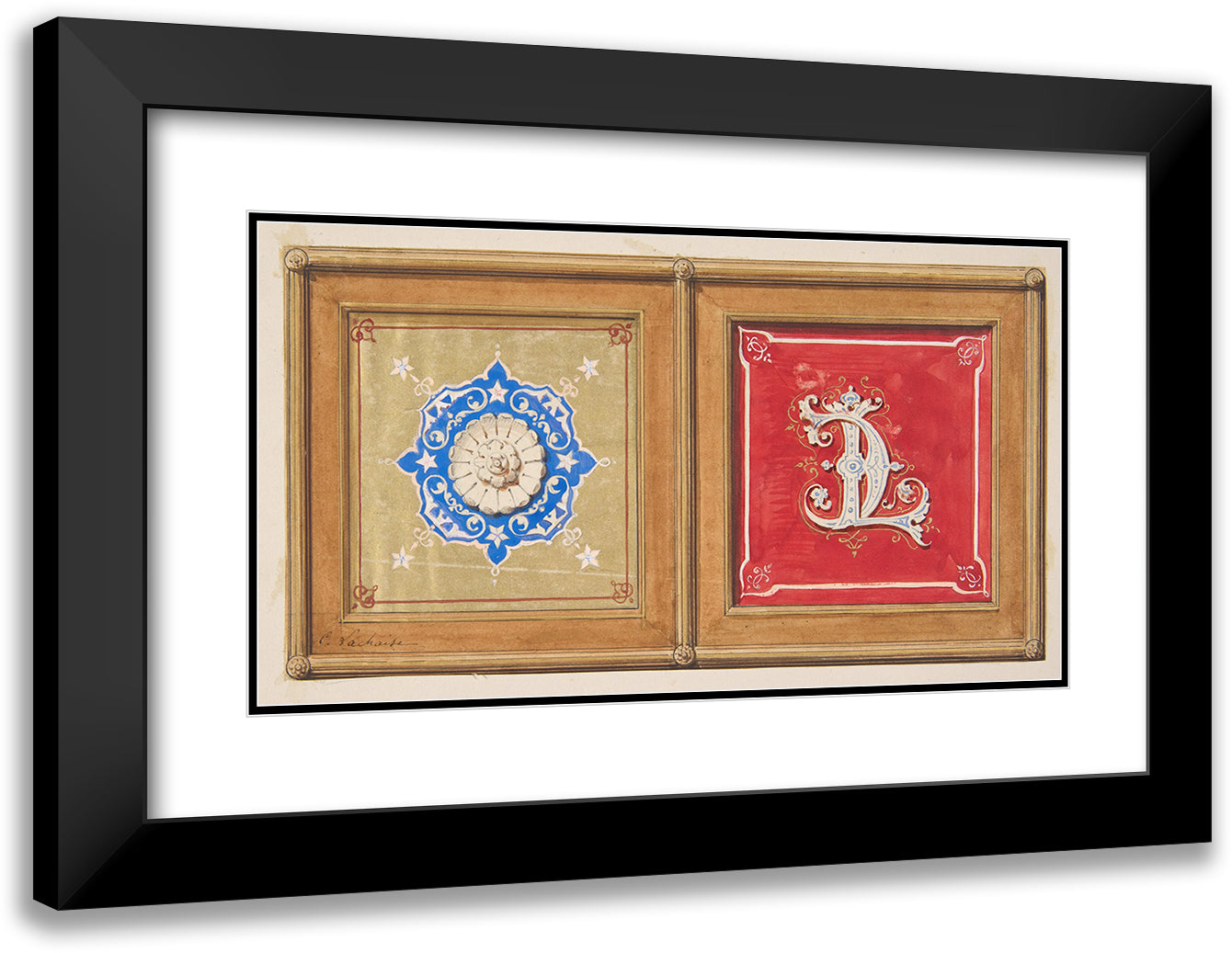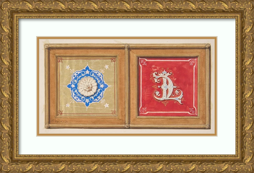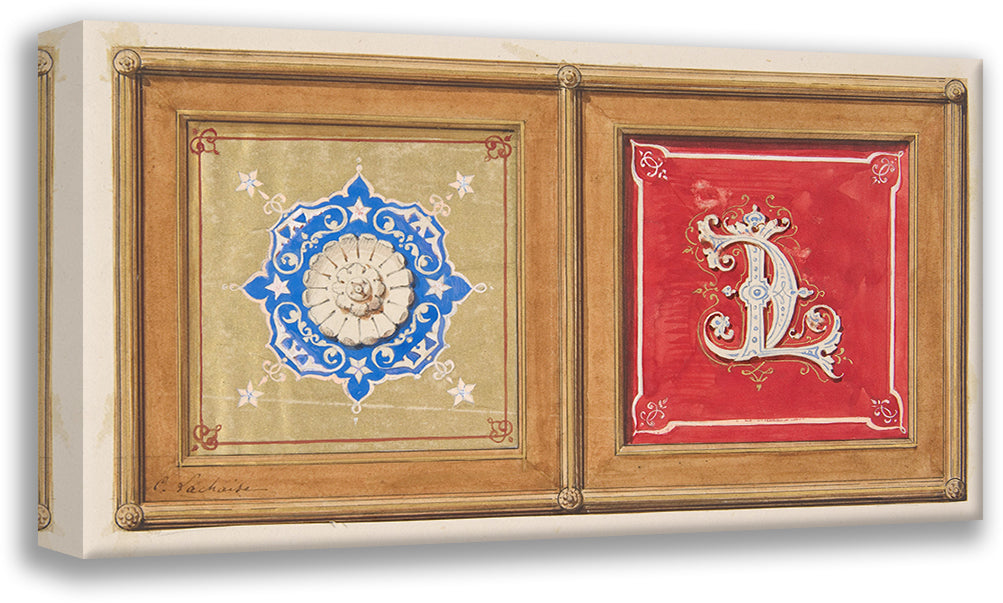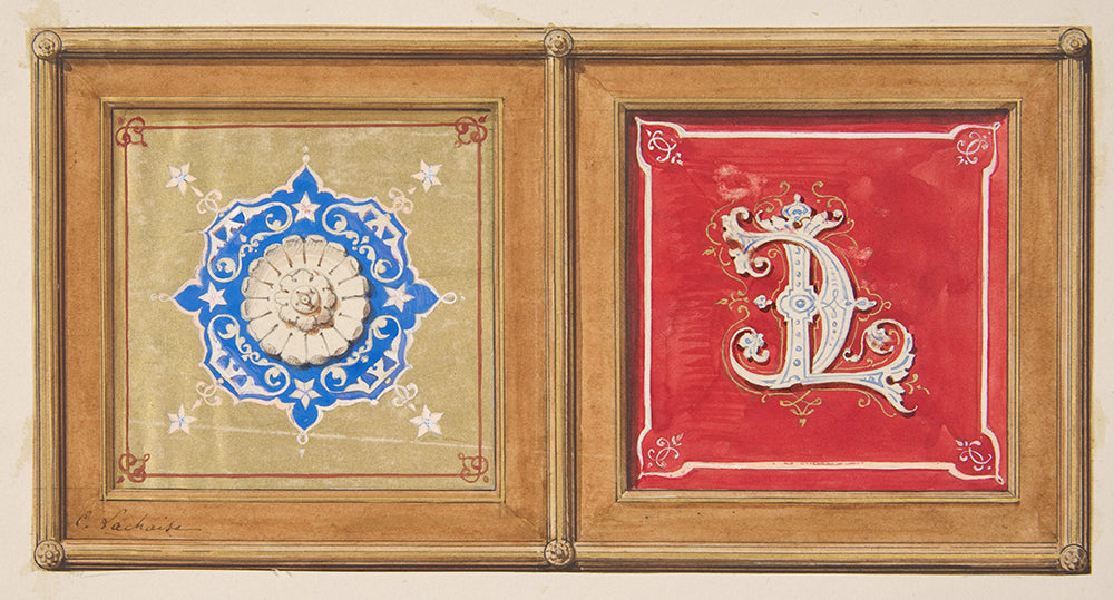 Two Alternative Designs for the Painted Decoration of a Panel (One with the Intertwined Initials Cl) (19th Century)