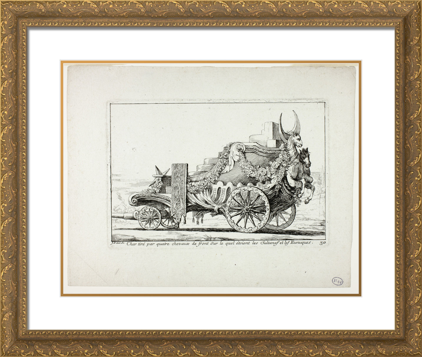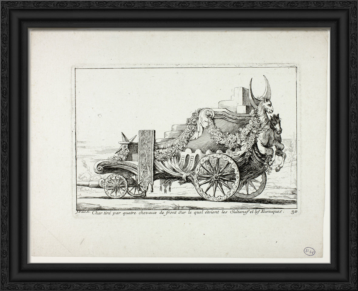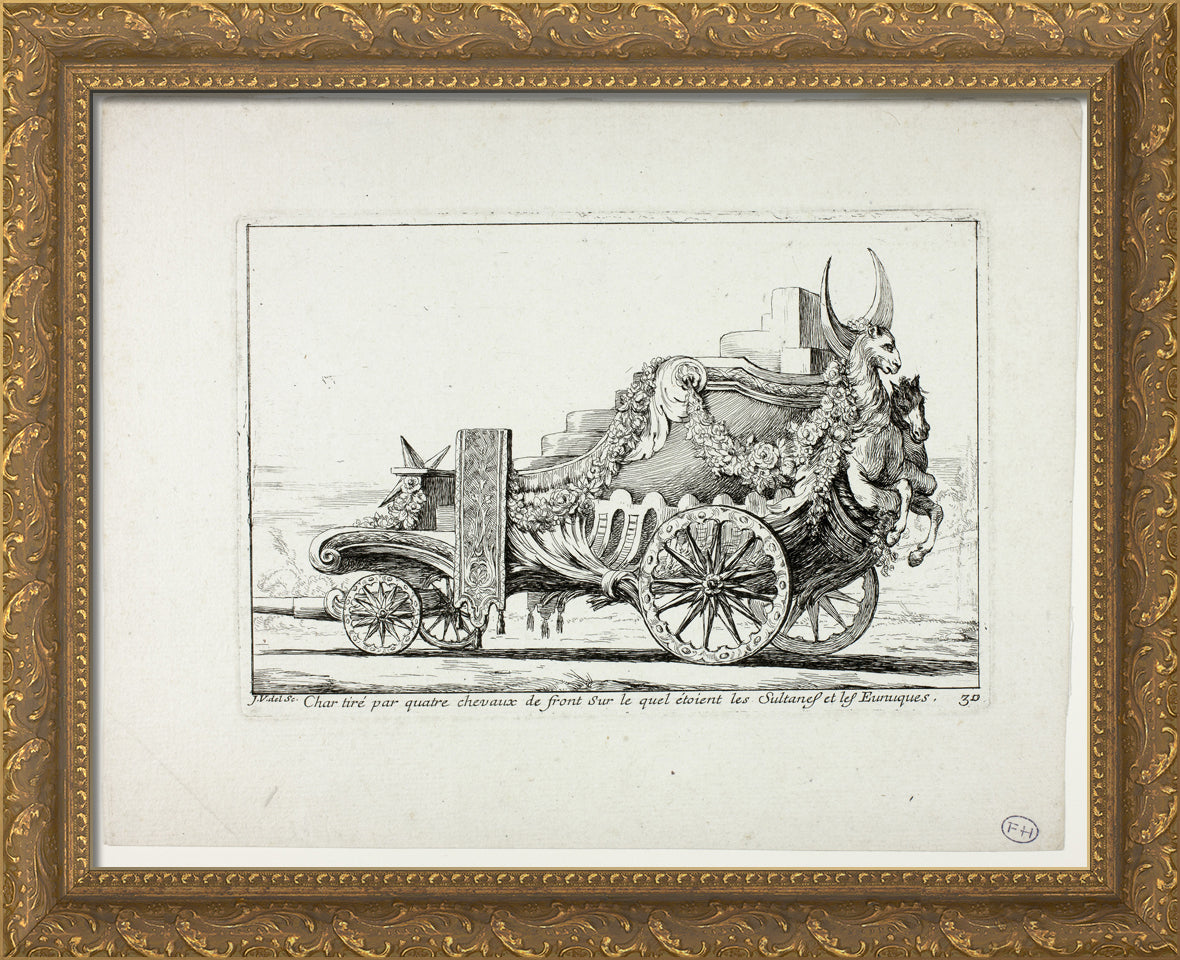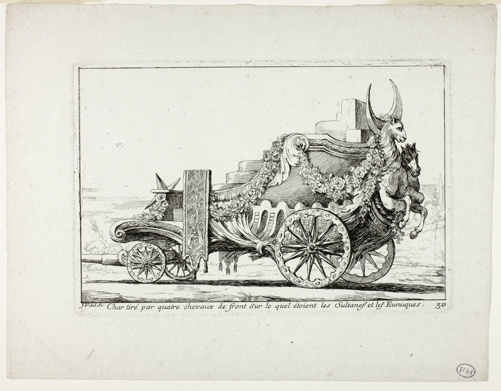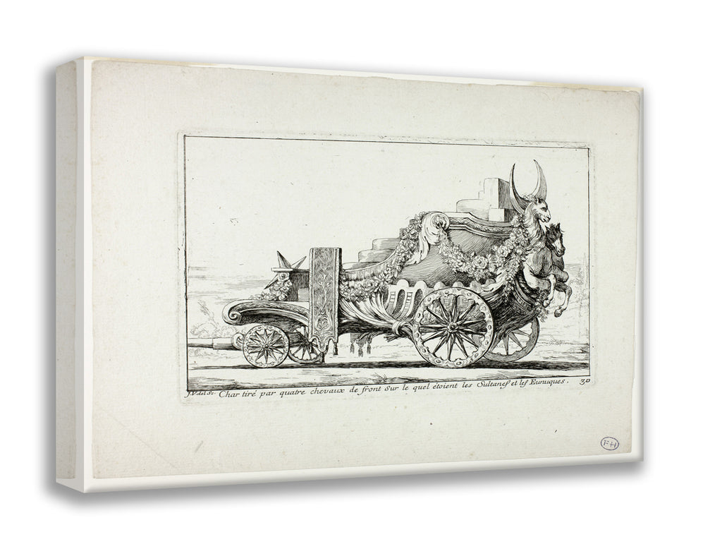 • Char tira par quatre chevaux de front, Sur lequel ataient les Sultanes et les Eunuques, plate 30 from Caravanne du Sultan a la Mecque by Joseph Marie Vien, I