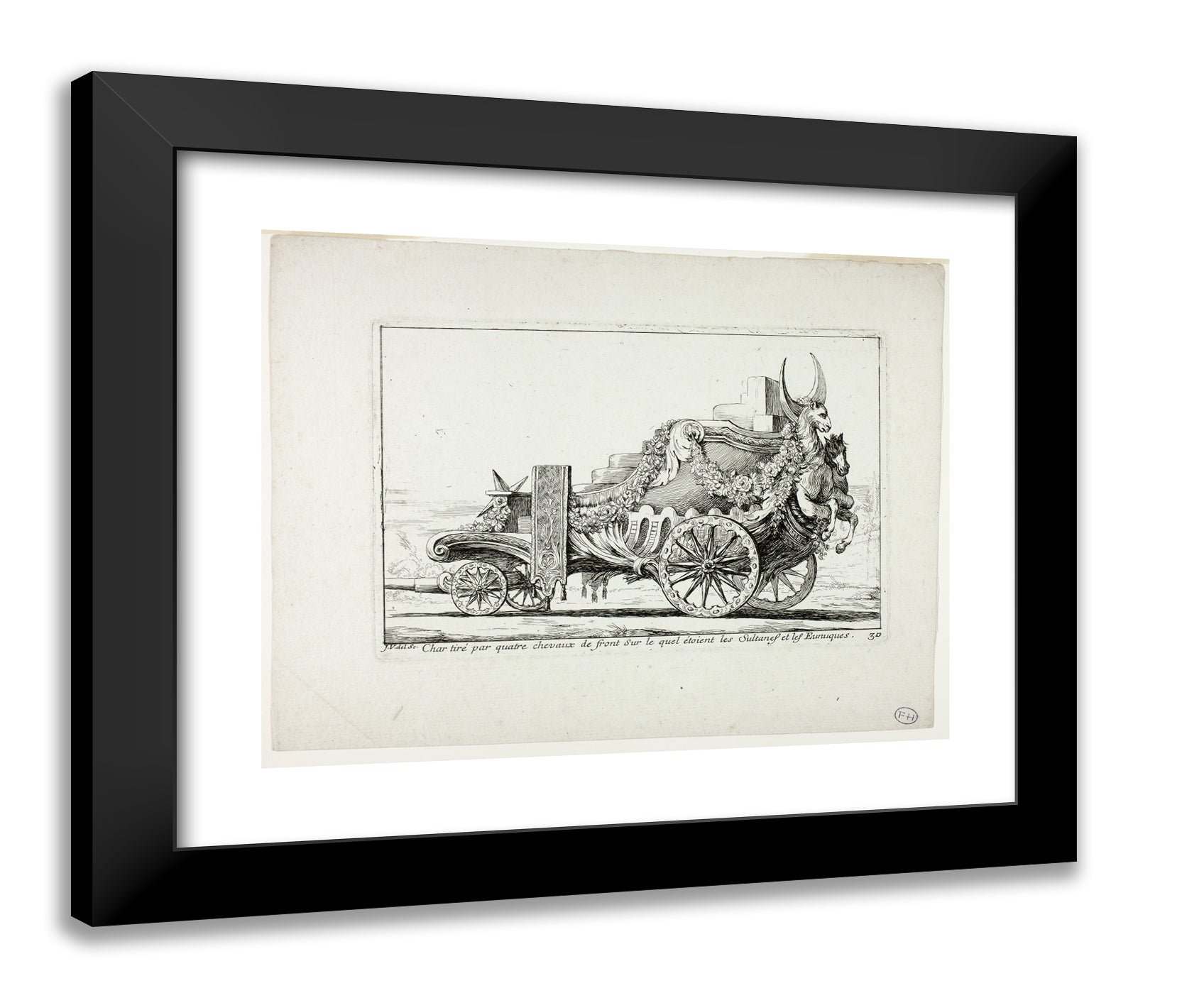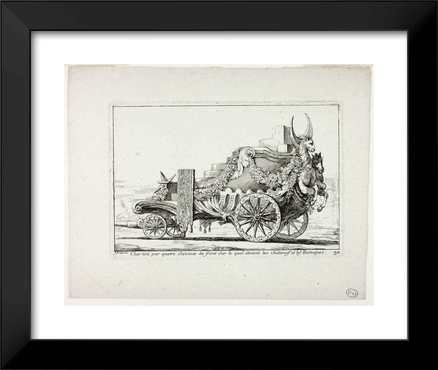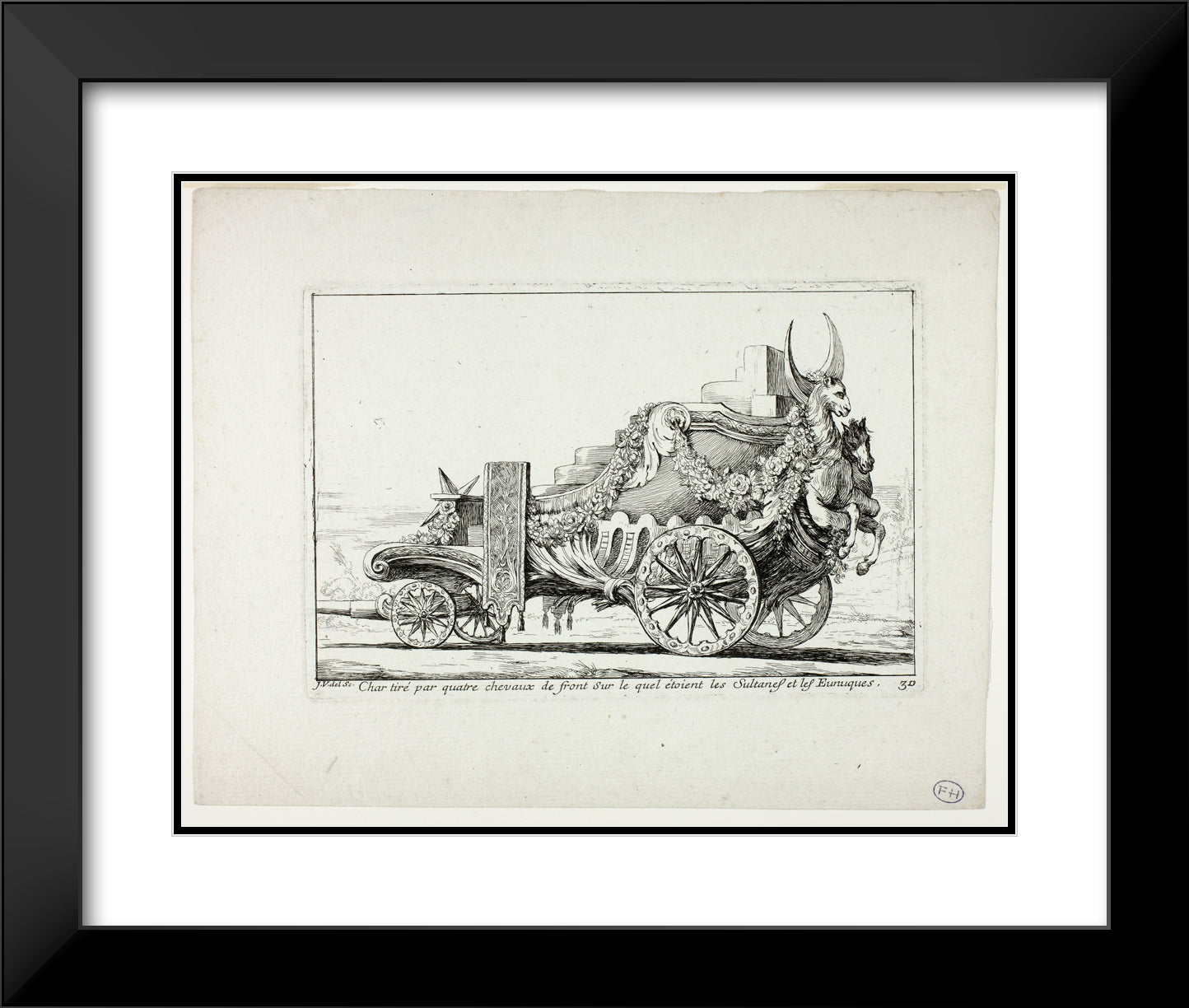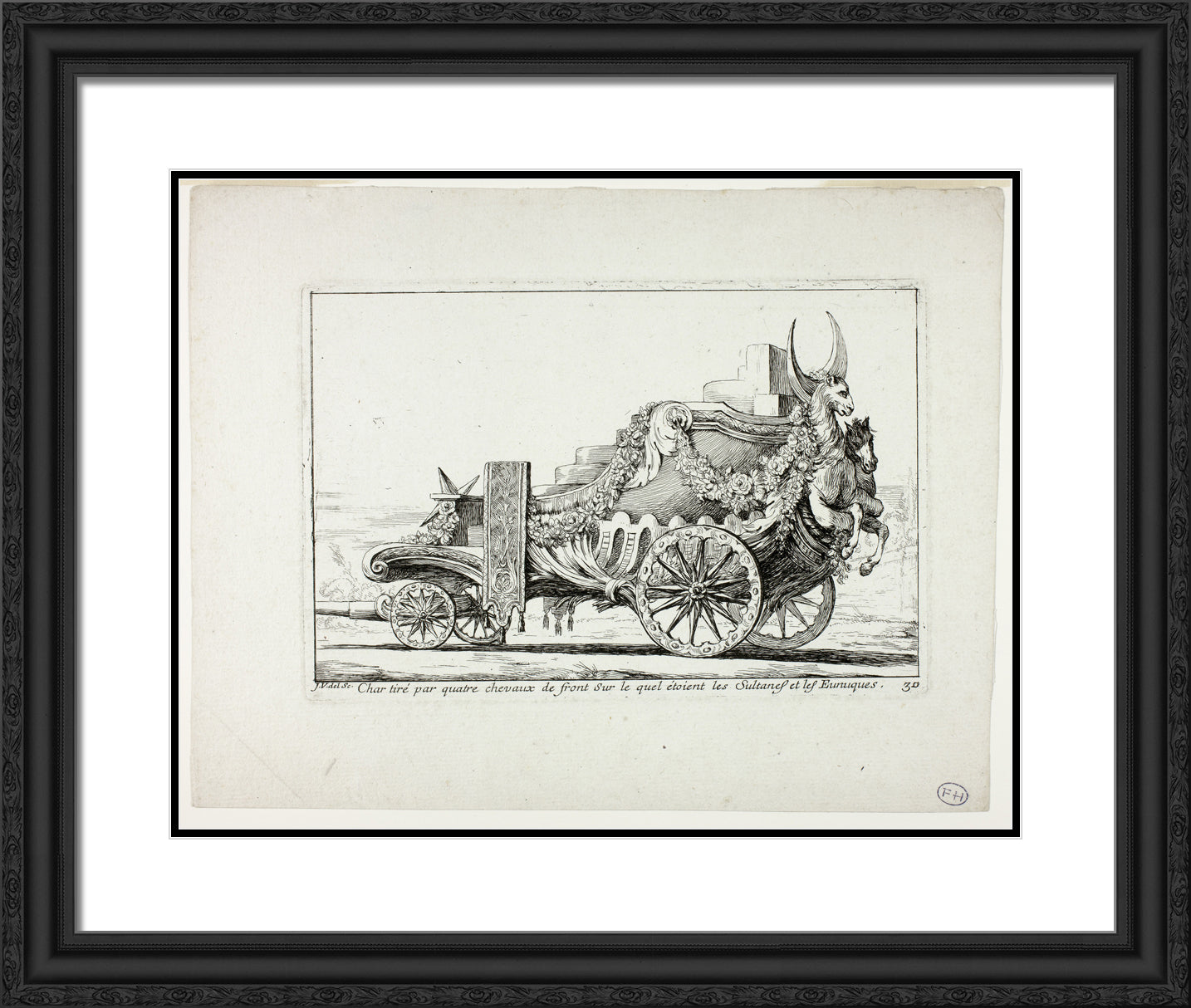 • Char tira par quatre chevaux de front, Sur lequel ataient les Sultanes et les Eunuques, plate 30 from Caravanne du Sultan a la Mecque by Joseph Marie Vien, I