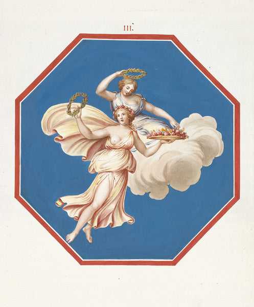 Pierre-Jean Mariette Octagonal Painting of Two Women Riding a Cloud and Holding Wreaths and Flowers. (1783) from $9.99