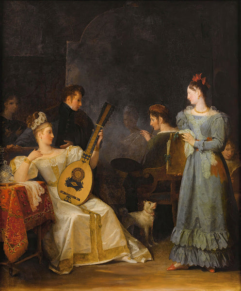 Marguerite Gérard Two Ladies in an Interior Reading a Letter, with a Dog on a Bench Looking into a Mirror from $9.99