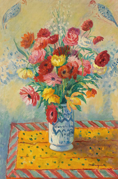 François Habert A Still Life of Flowers Set on a Table With A Carpet, a Music Book and a Dog Seated on a Pillow (1649) from $9.99