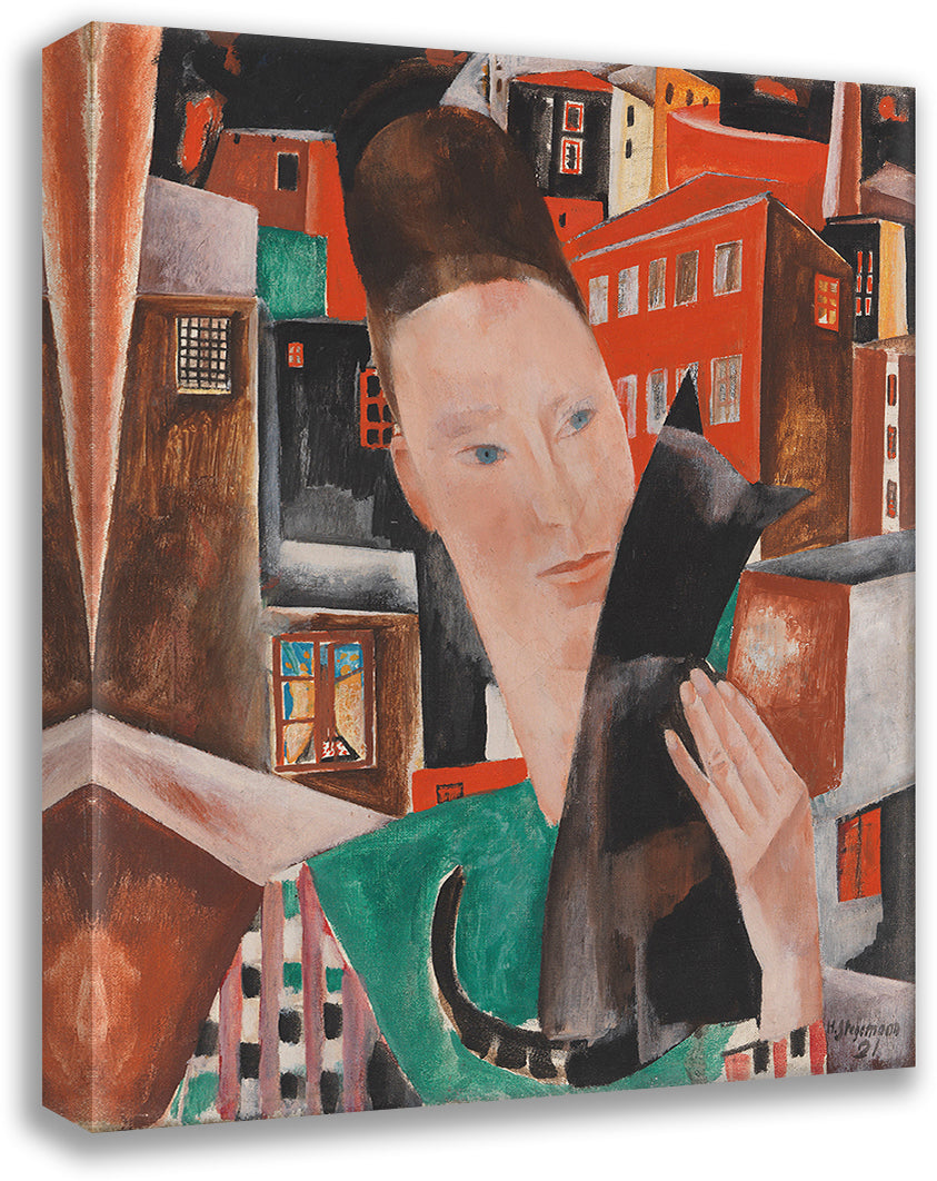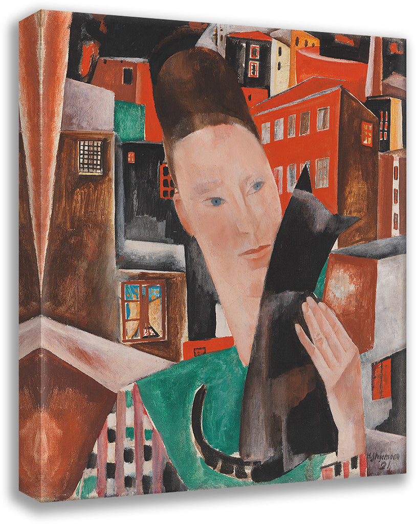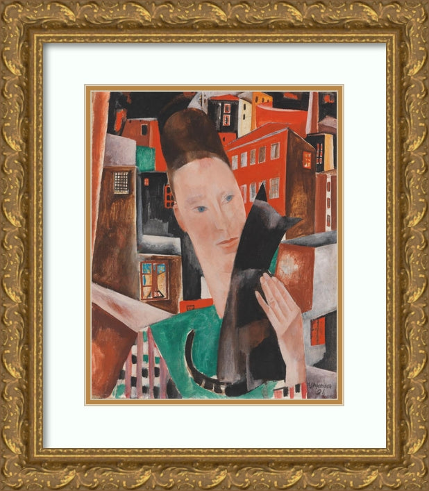 Woman and Black Cat at Night - Portrait Ingeborg Stegemann (1921)