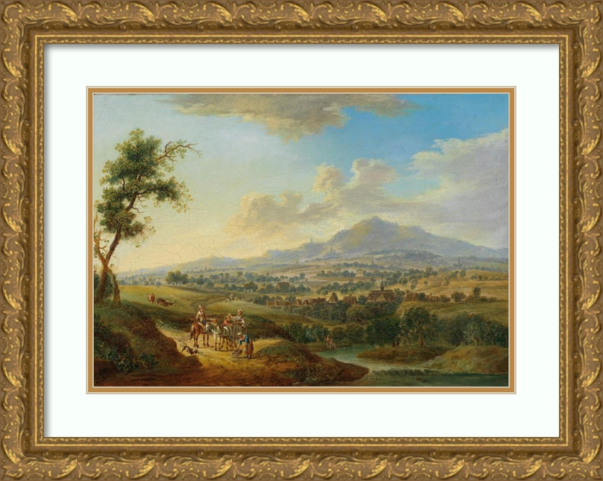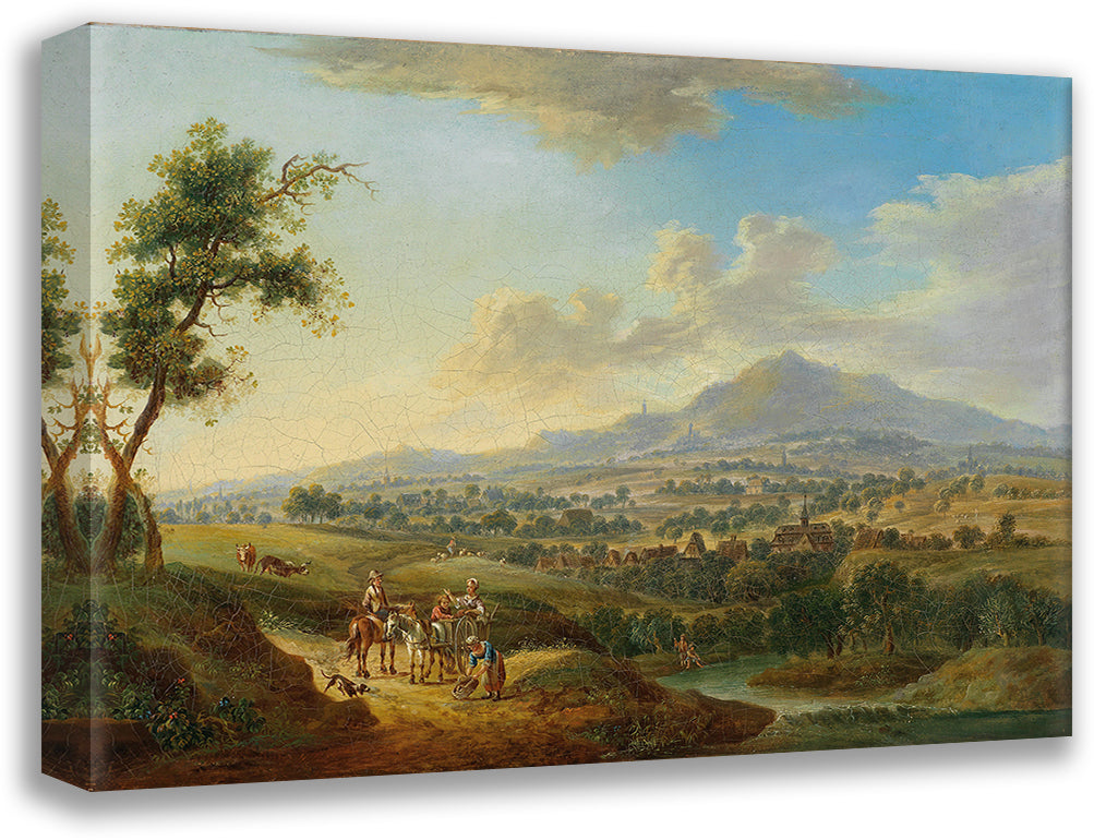 A Hilly River Landscape with Market Drivers and Anglers