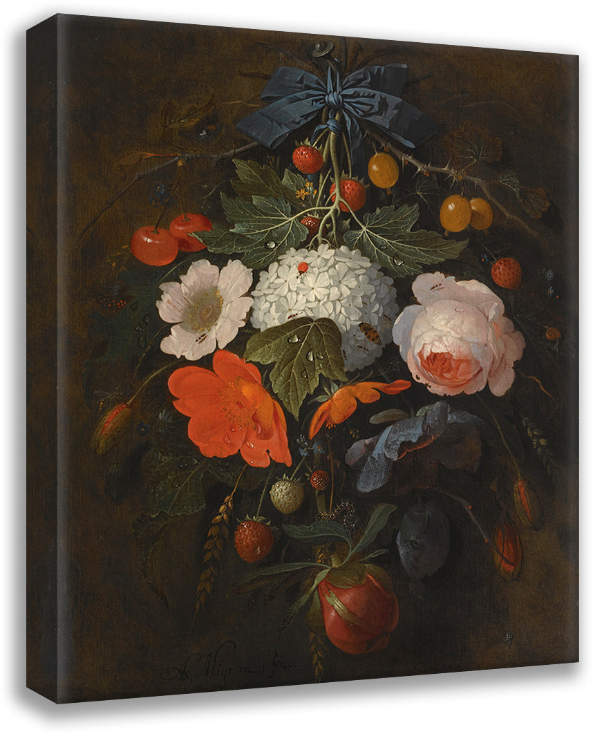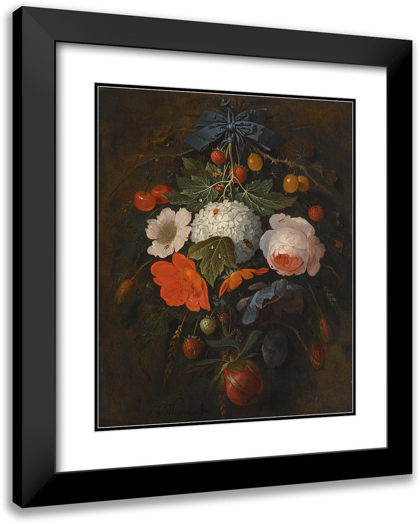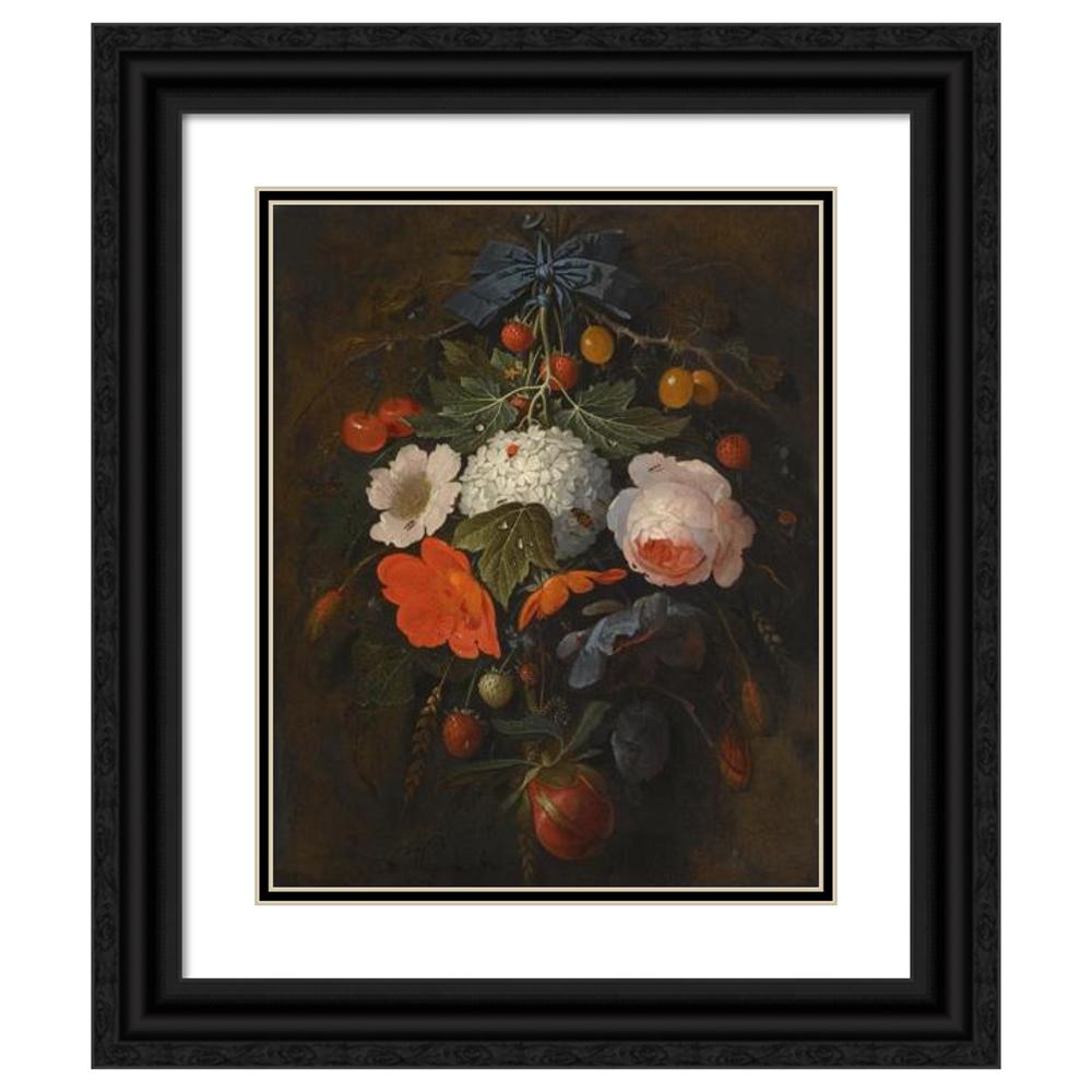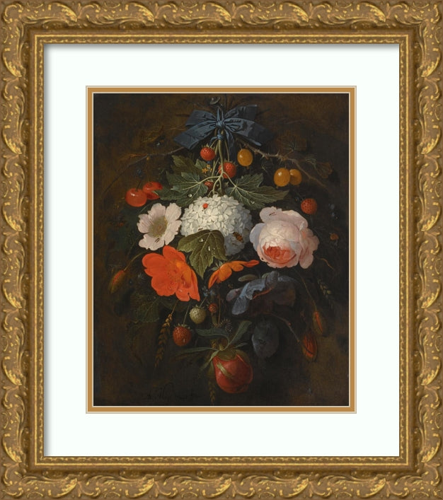 / A Festoon of Flowers and Fruit, Including a Pink Rose, a Poppy, a Snowball, Gooseberries and Fraises De Bois, Along with a Variety of Insects