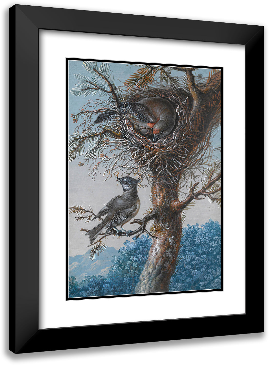 A Greater Redpoll and a Crested Tit