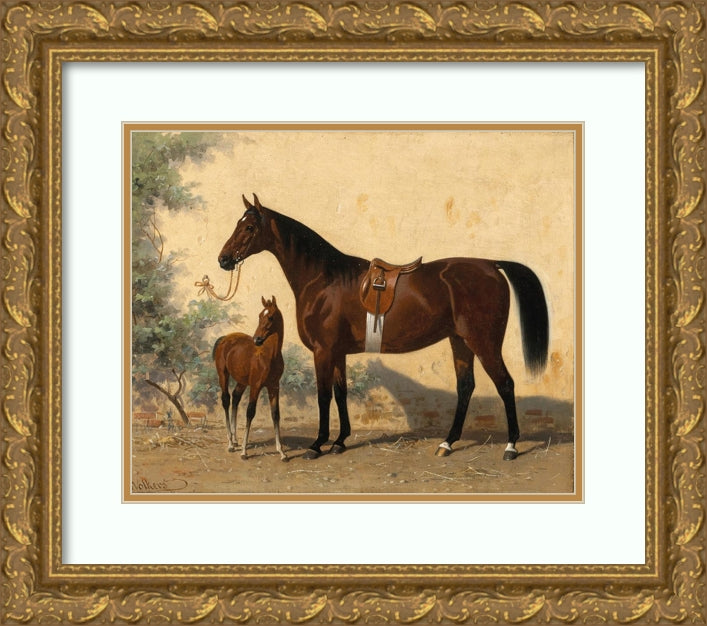 A Bay Horse with Foal