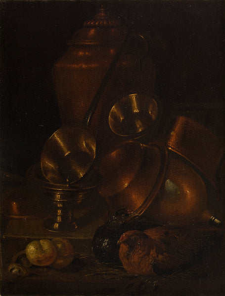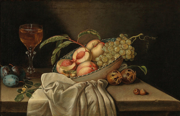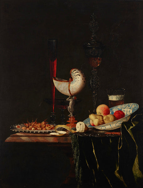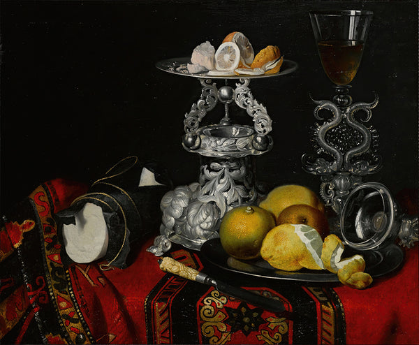 Circle of Georg Hinz Still Life with a Facon-De-Venise Serpent-Stemmed Wine Glass, a Silver Vessel, a Block of Sugar and Lemons on a Pewter Plate, All on a Draped Table from $9.99