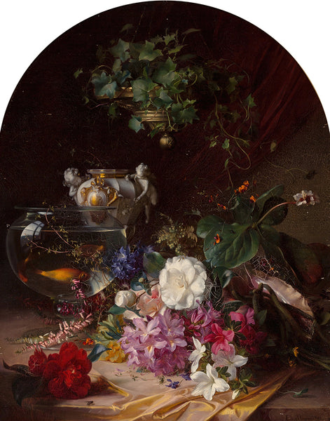 Elise Puyroche-Wagner Still Life with Flowers, a Porcelain Vase, and a Goldfish Bowl (1849) from $9.99
