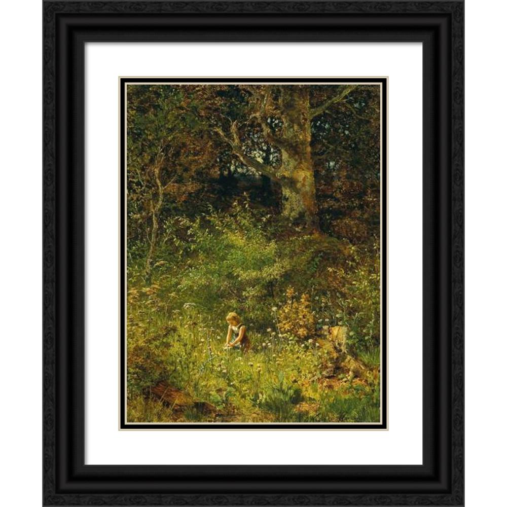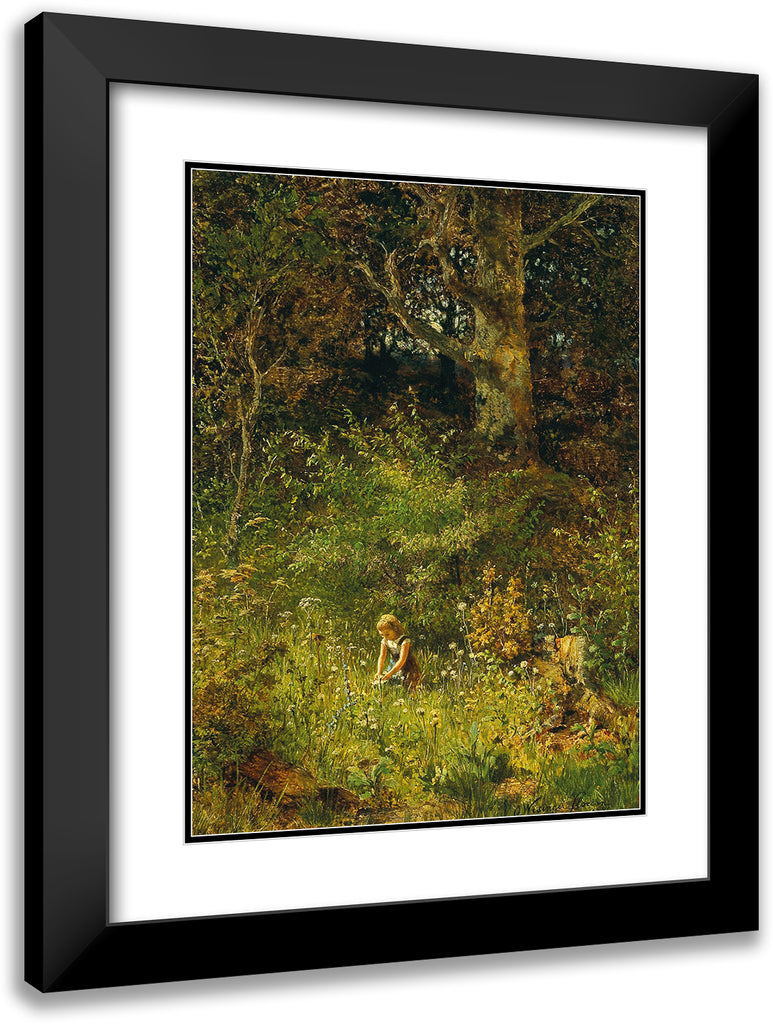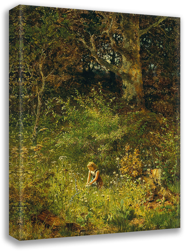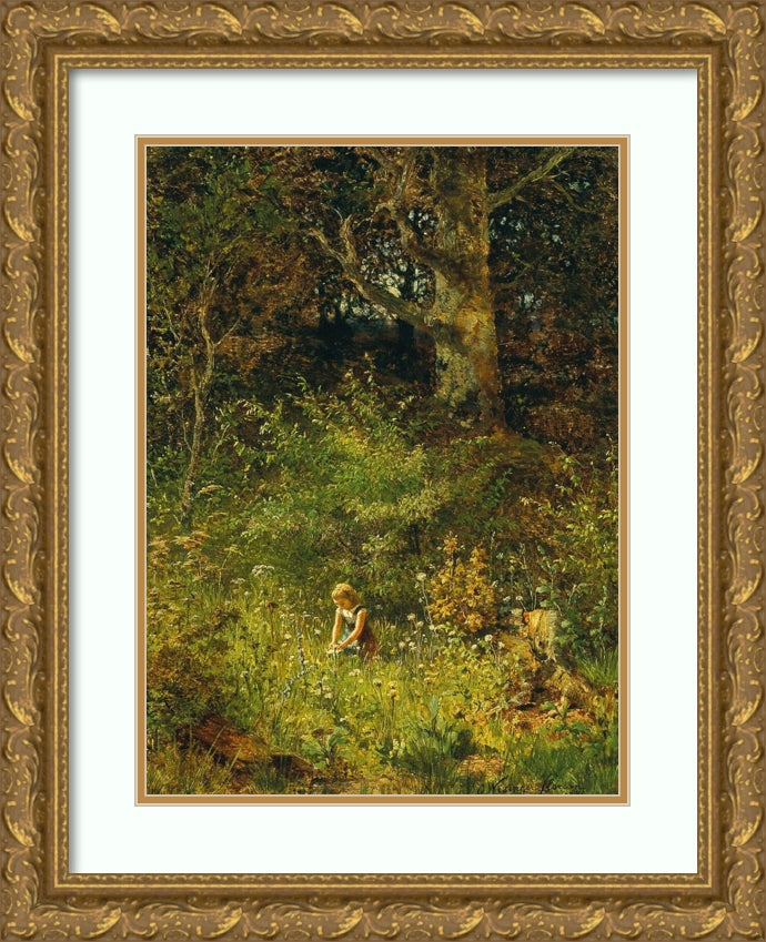 A Girl Gathering Flowers in a Forest Glade