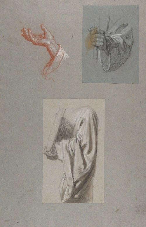 / A. Hand of Saint Remi; B. Hand of Saint Remi; C. Drapery Study for Acolyte Holding Book (19th Century)