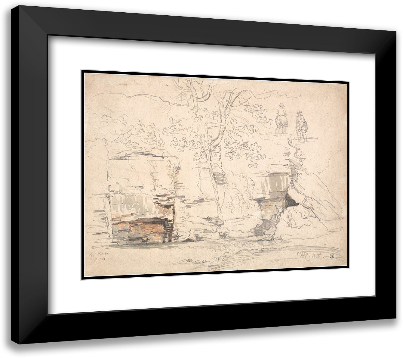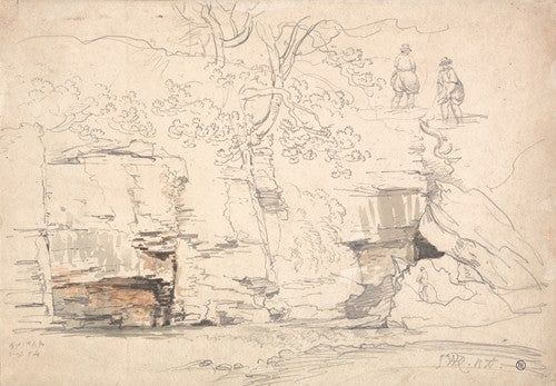 A Rocky Hillside with Trees and Figures