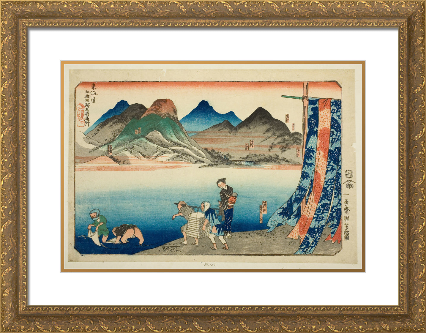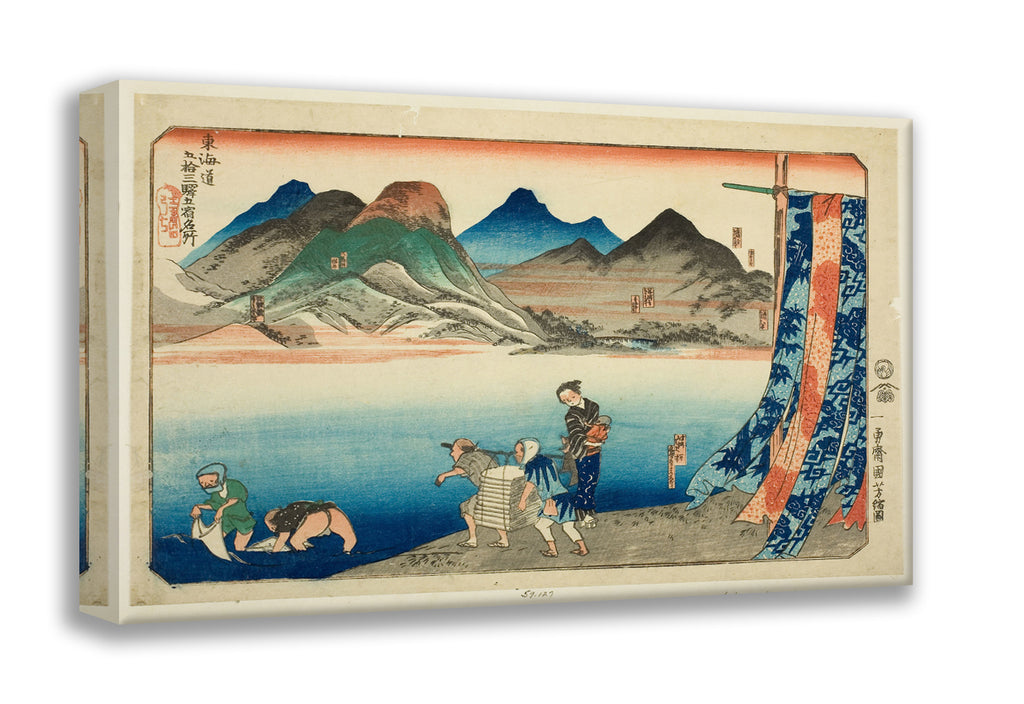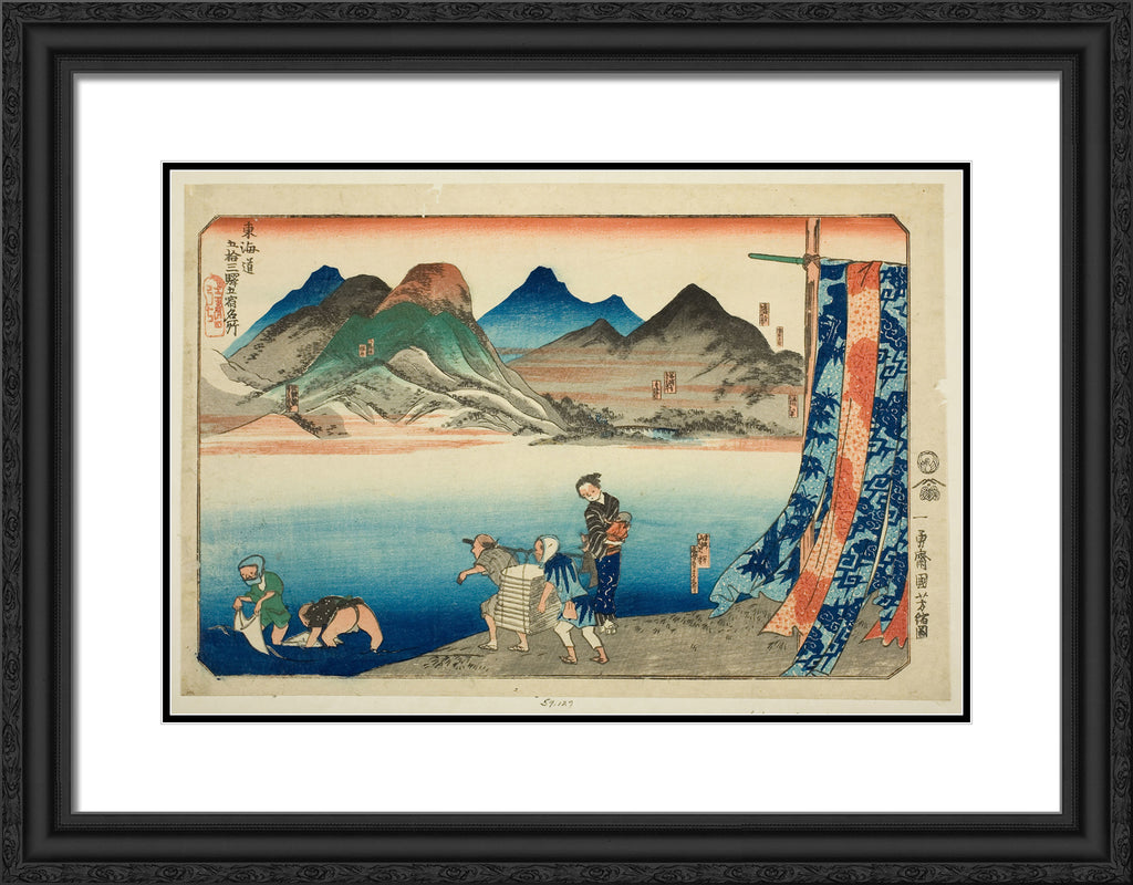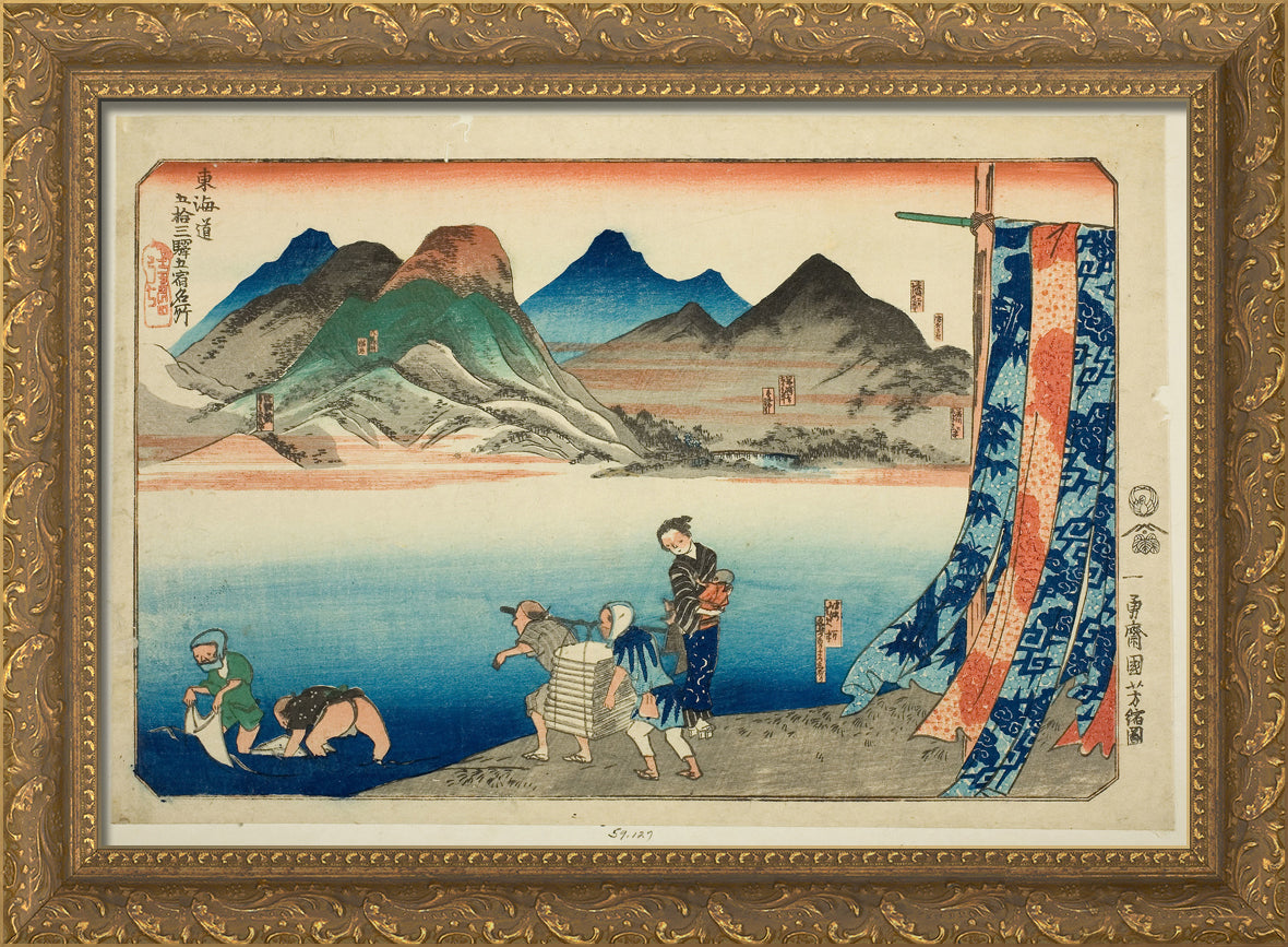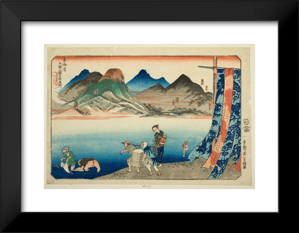/ Akasaka, Fujikawa, Okazaki, Chiryu, and Narumi, from the series "Famous Places on the Fifty-three Stations of the Tokaido, Five Stations (Tokaido gojusan eki goshuku meisho)" by Utagawa Kuniyoshi