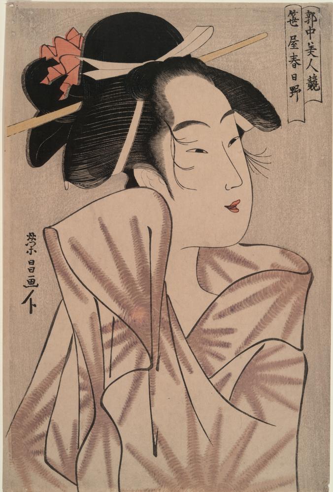 / Kasugano of Sasa-Ya (House of Bamboo Grass) ; Beauties of the Gay Quarters (ca. 1798)