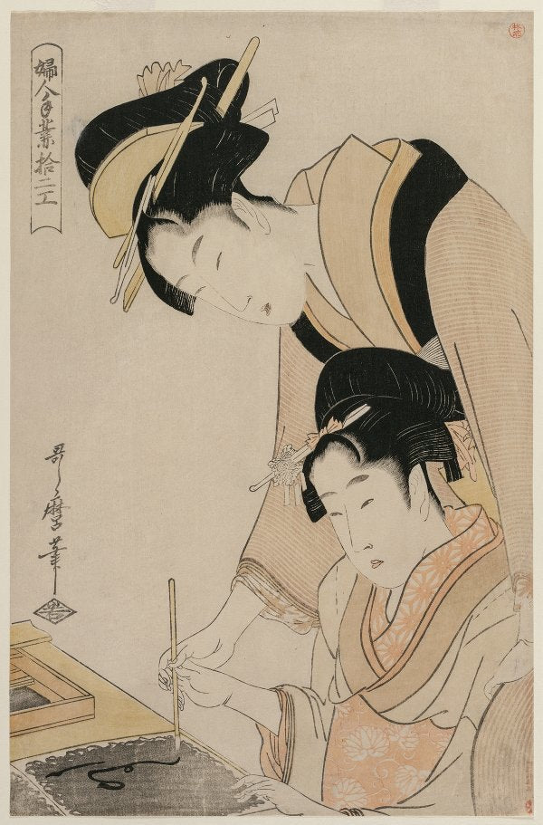 / Mother Teaching Her Daughter Calligraphy, from the Series, Twelve Occupations of Women (C. 1798)