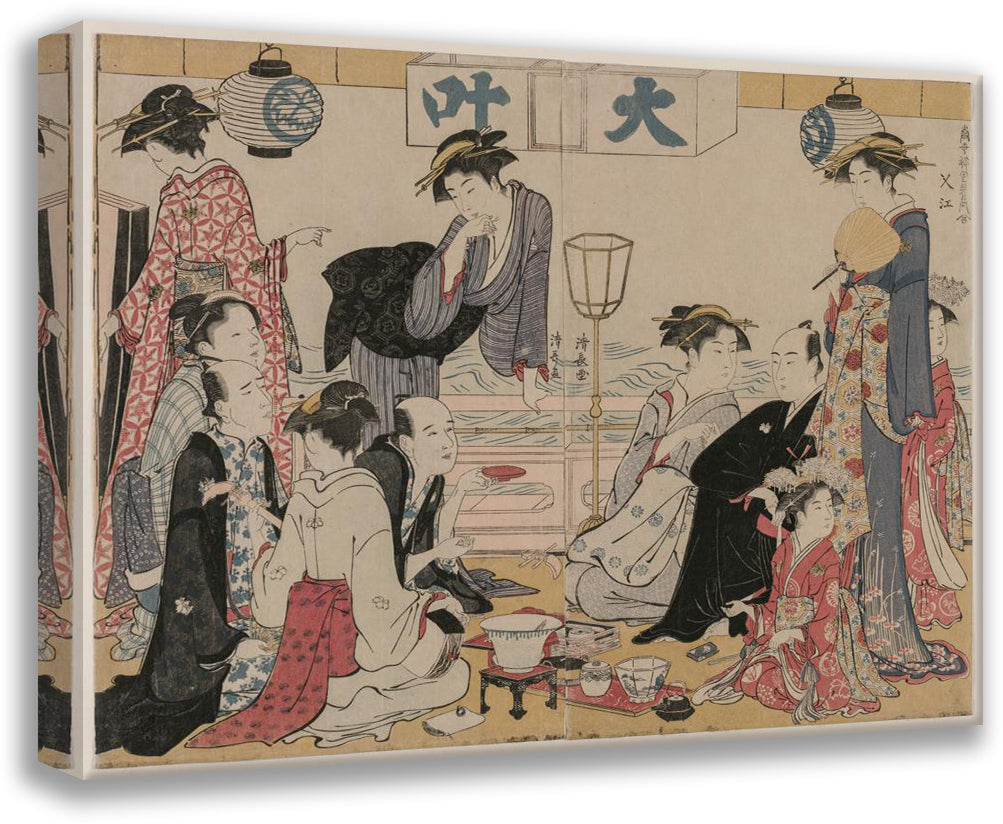 / Entertainment on a Balcony by the Water at Nakasu, from the Series, a Collection of Beautiful Modern Women of the Pleasure Quarters (1783)