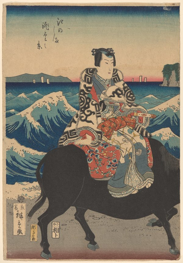 Enoshima Island (Figure on an Ox, Waves) (19th Century)