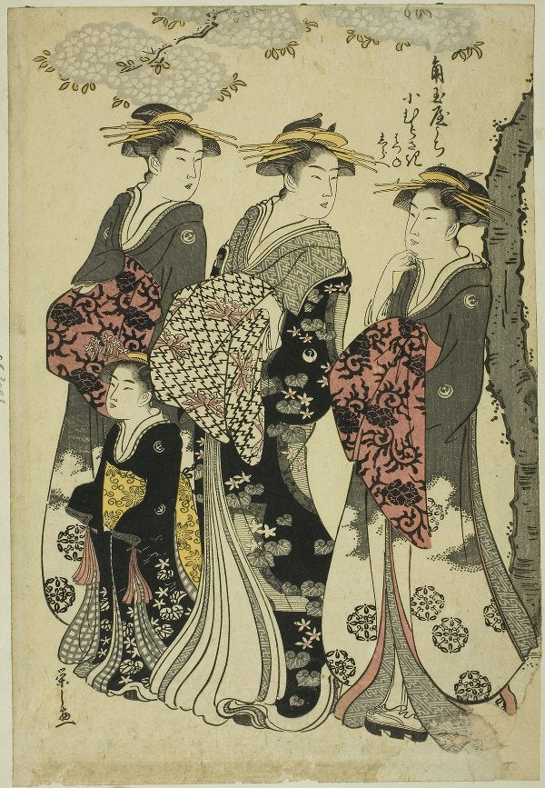 / Komurasaki of the Kadotamaya with Attendants Hatsune and Shirabe (1791)