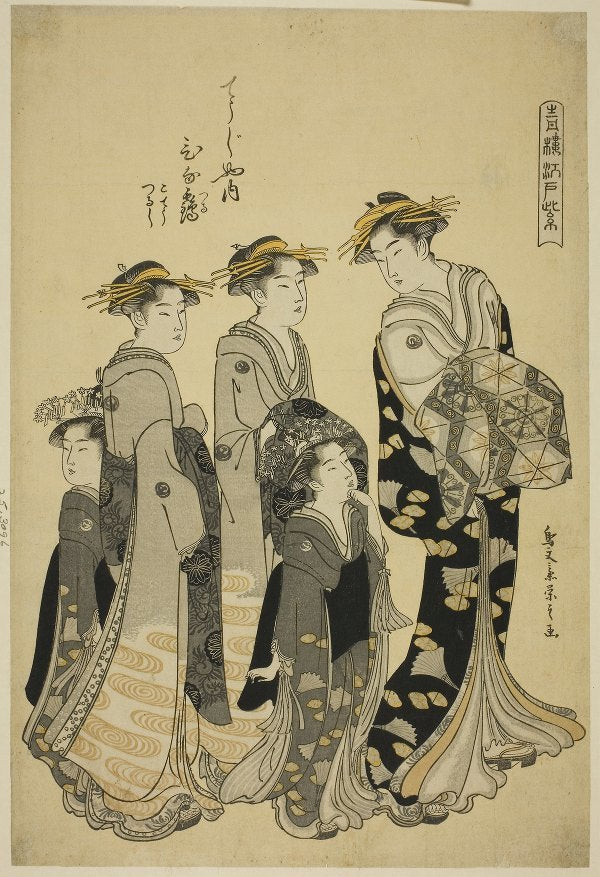 / The Courtesan Hinazuru of the Chojiya with Her Attendants, from the Series ‘Edo Purple in the Pleasure Quarters (Seiro Edo Murasaki)’ (C. 1790)