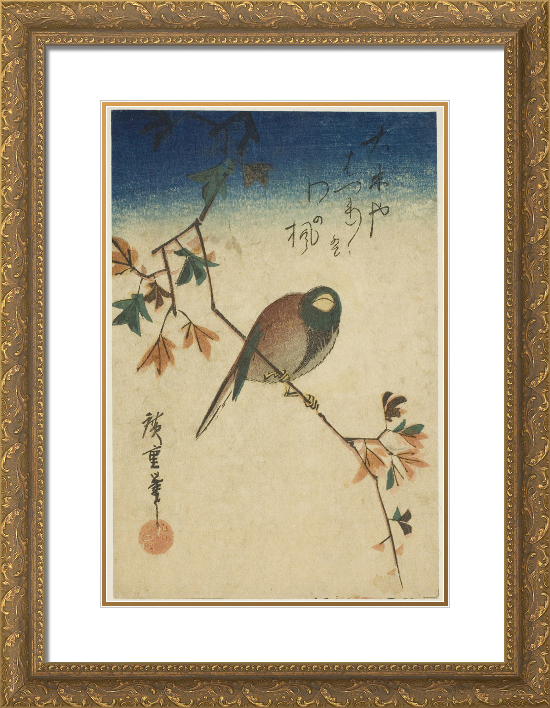 • Bird on maple branch by Utagawa Hiroshige