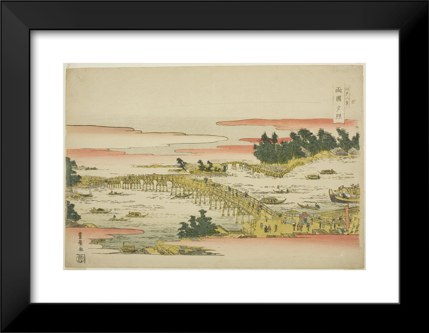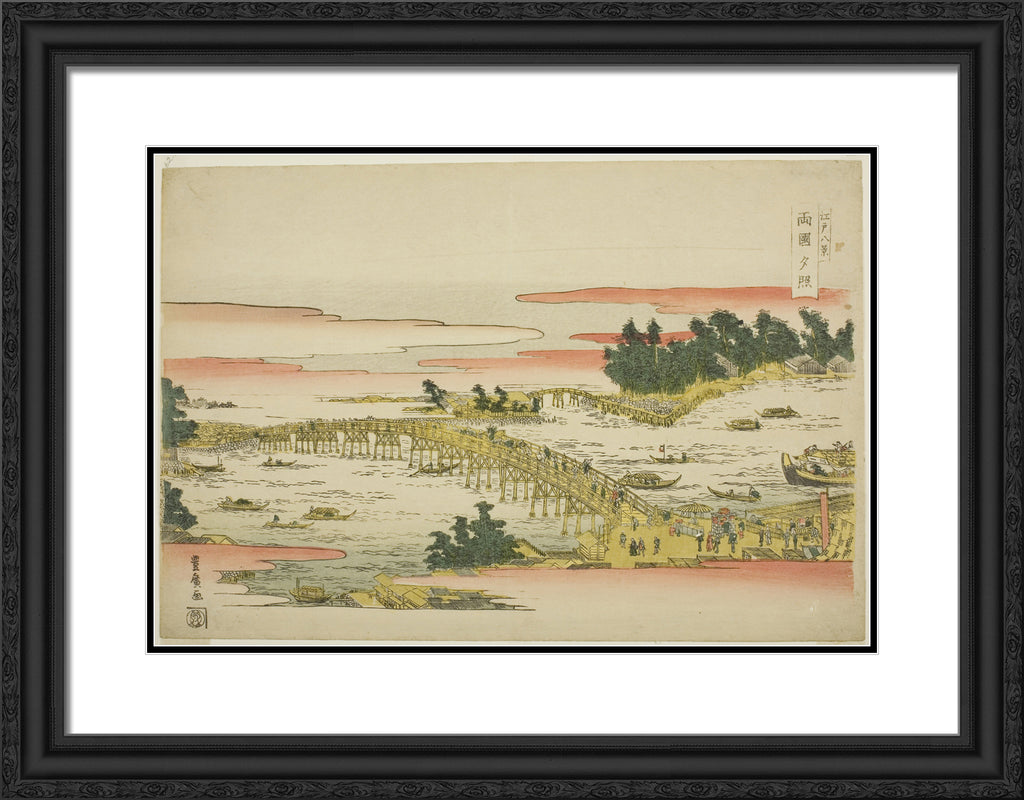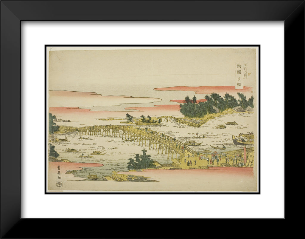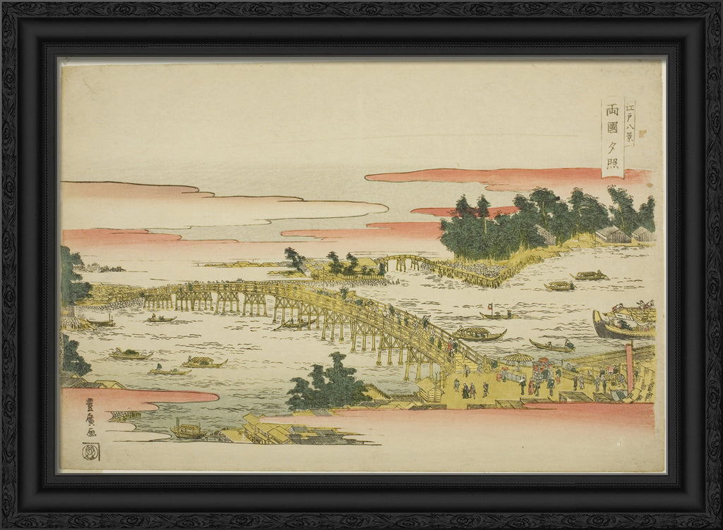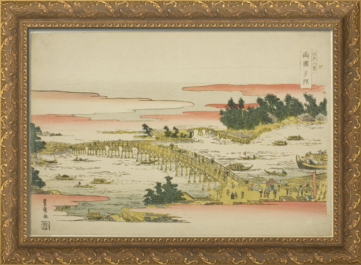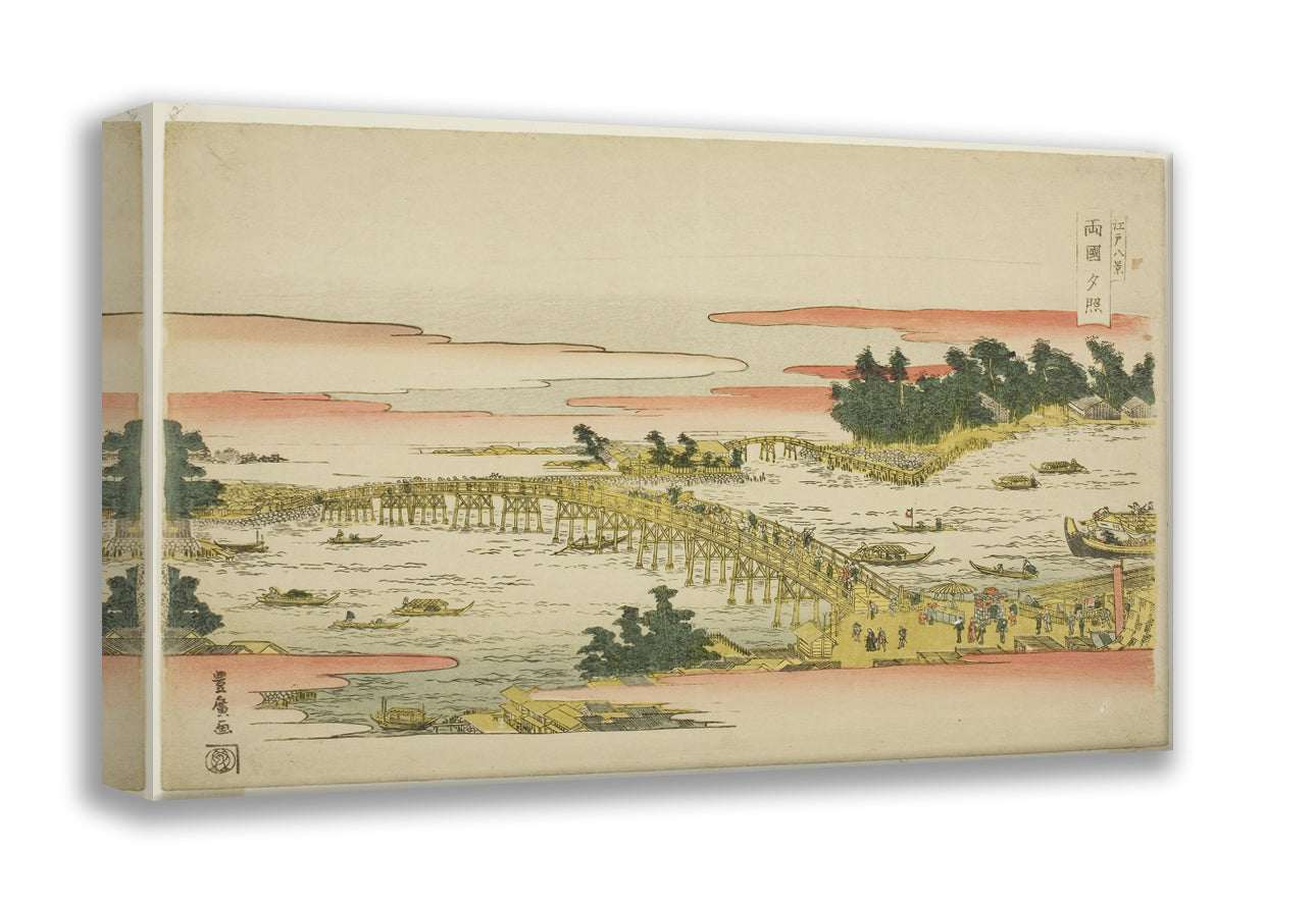 / Evening Glow at Ryogoku Bridge (Ryogoku sekisho), from the series "Eight Views of Edo (Edo hakkei)" by Utagawa Toyohiro
