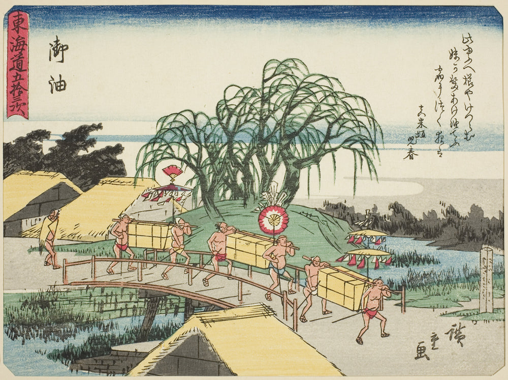 / Goyu, from the series "Fifty-three Stations of the Tokaido (Tokaido gojusan tsugi)," also known as the Tokaido with Poem (Kyoka iri Tokaido) by Utagawa Hiroshige