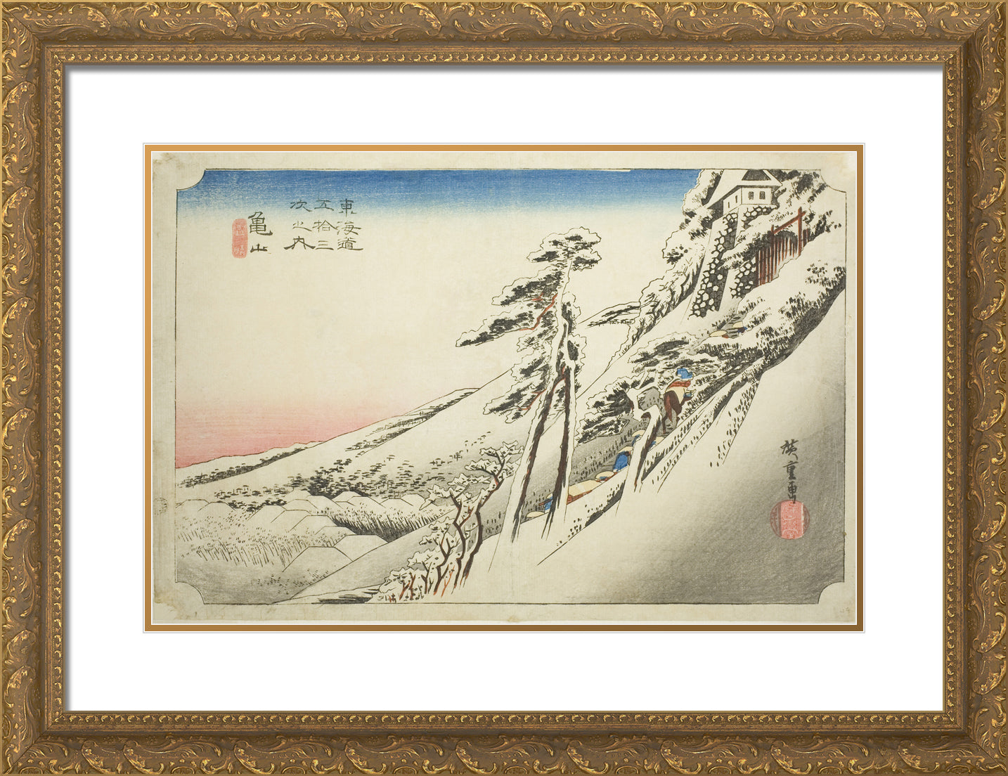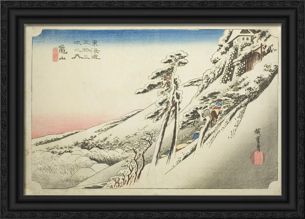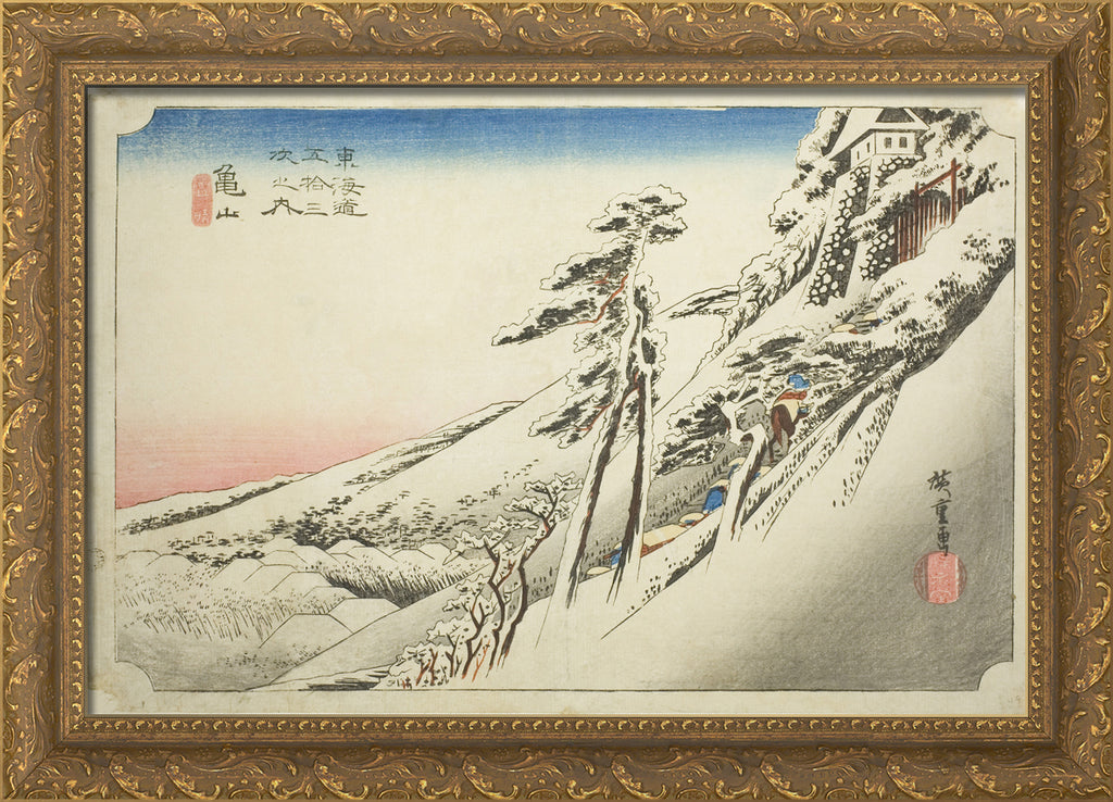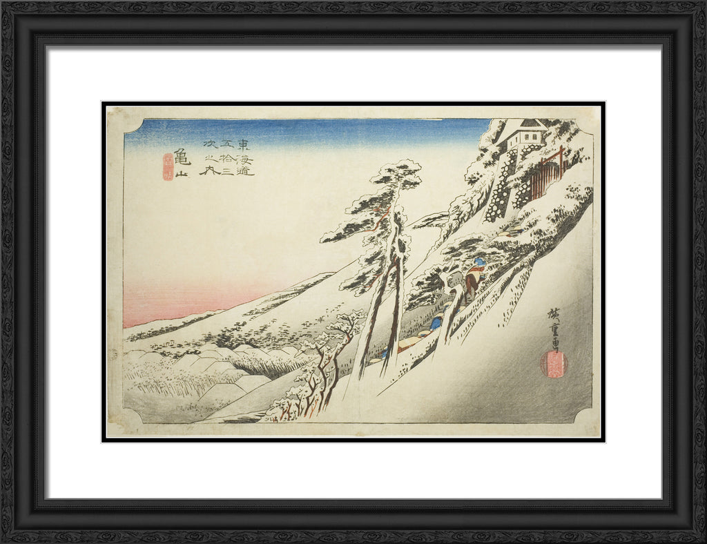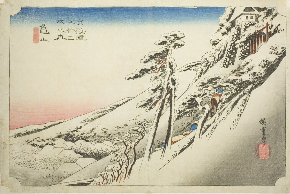 / Kameyama: Weather Clearing after Snow (Kameyama, yukibare), from the series "Fifty-three Stations of the Tokaido (Tokaido gojusan tsugi no uchi)," also known as the Hoeido Tokaido by Utagawa Hiroshige