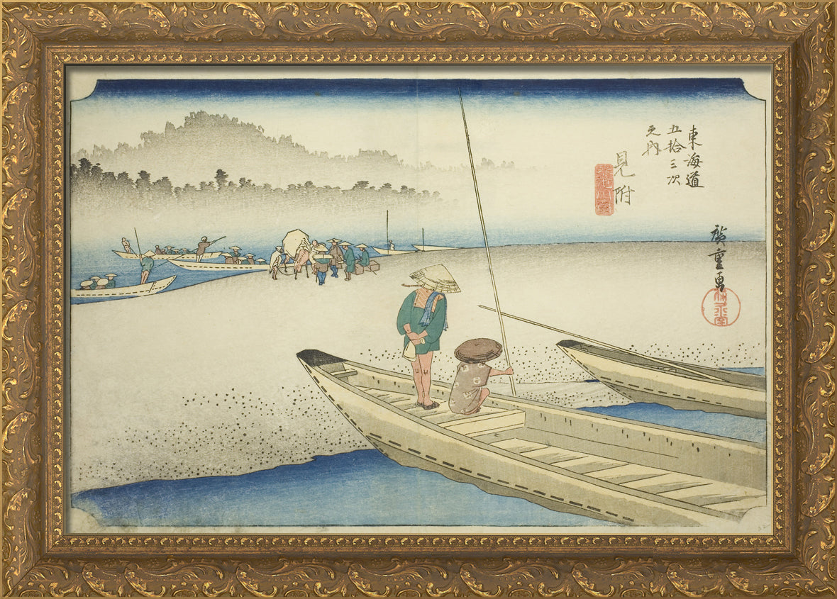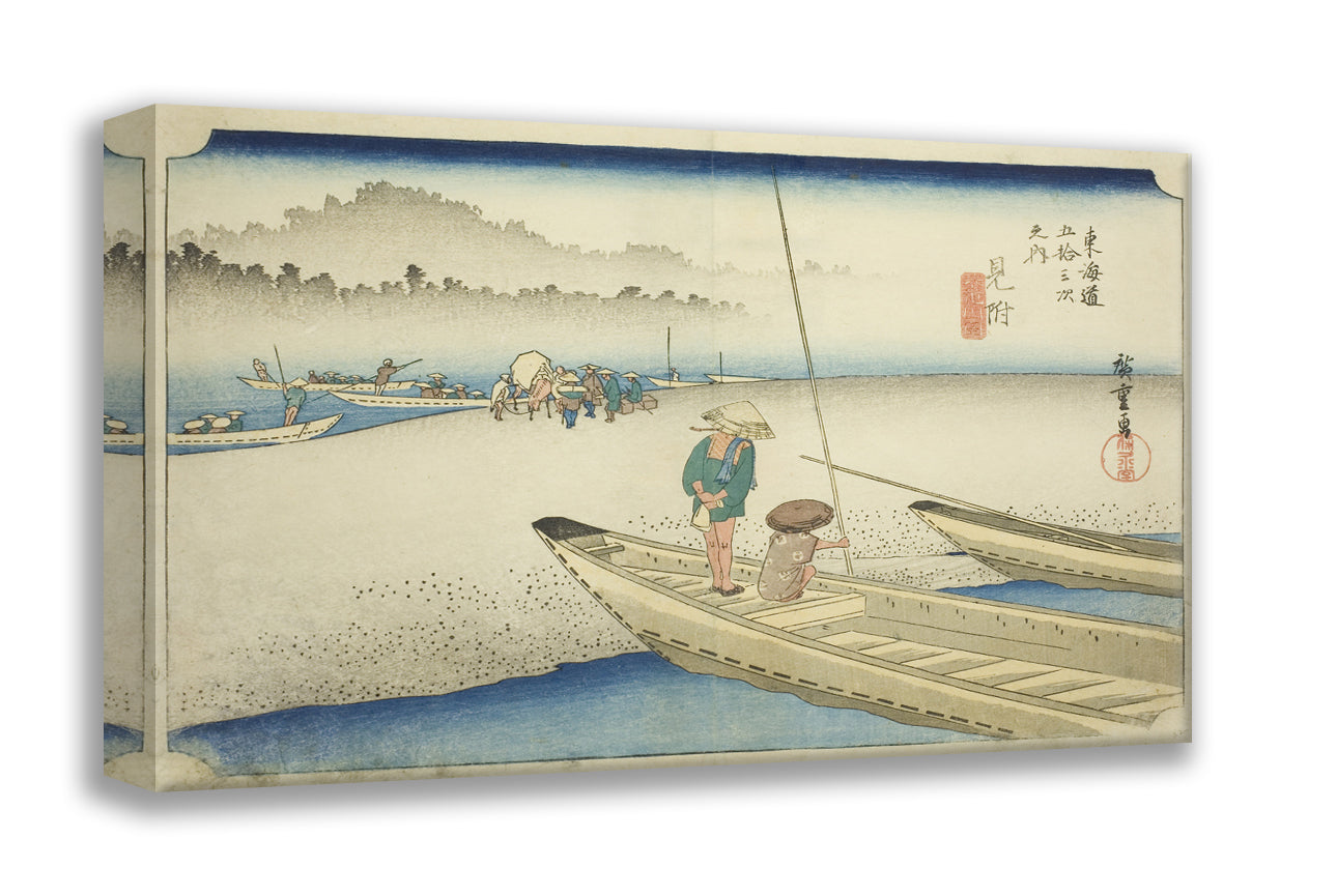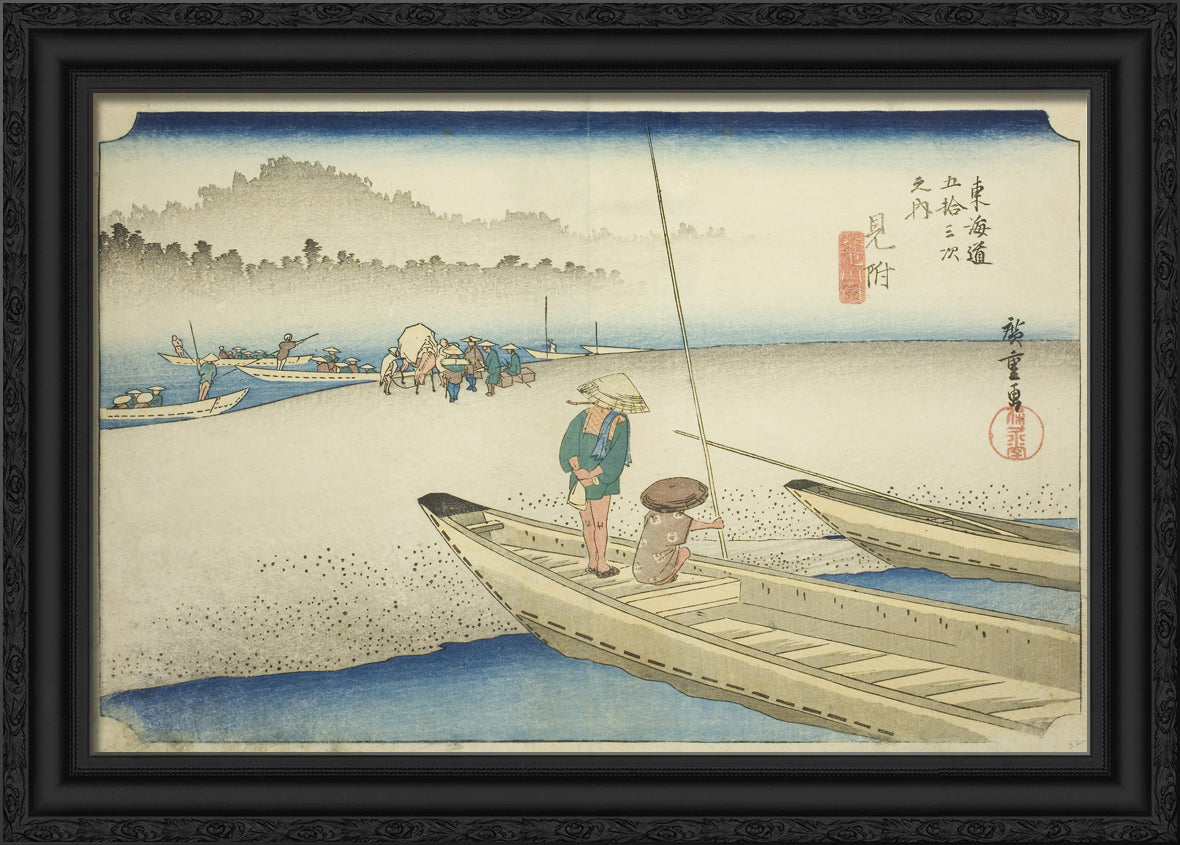 / Mitsuke: Tenryu River View (Mitsuke, Tenryugawa zu), from the series "Fifty-three Stations of the Tokaido (Tokaido gojusan tsugi no uchi)," also known as the Hoeido Tokaido by Utagawa Hiroshige