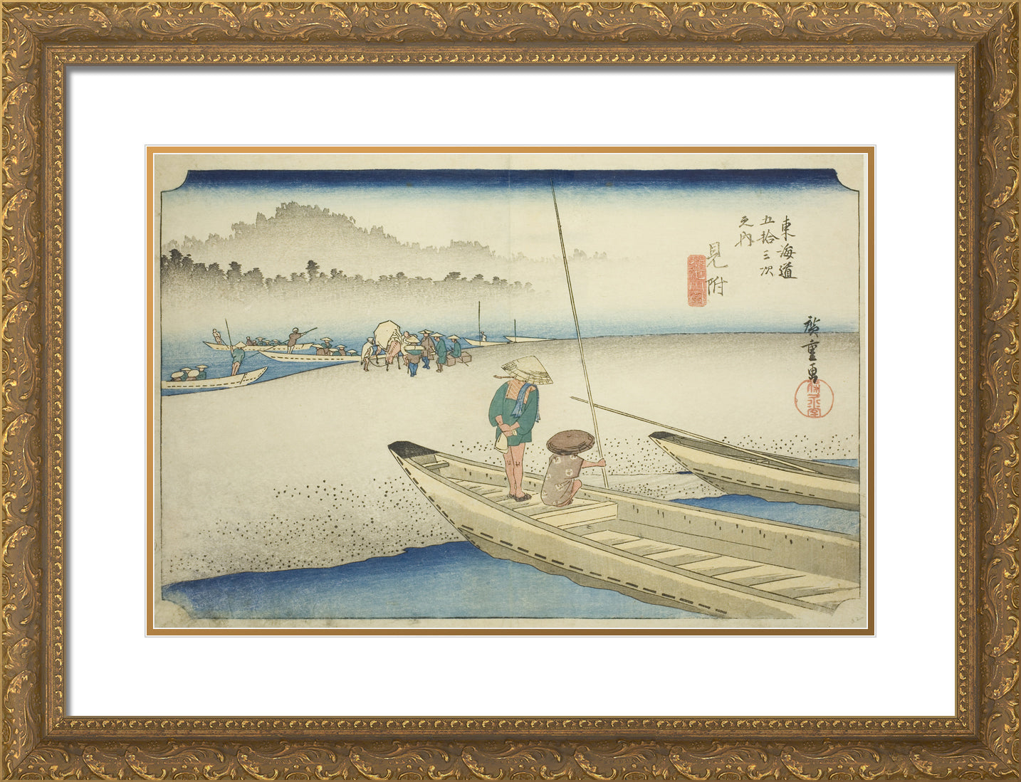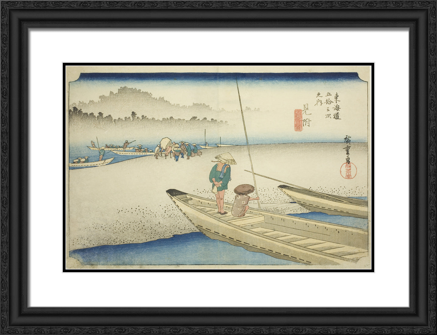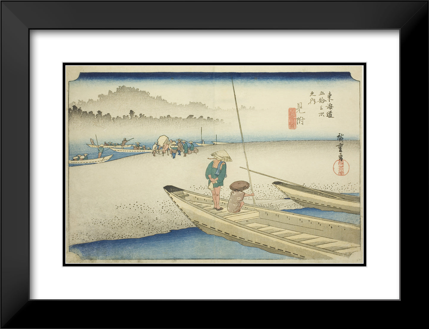 / Mitsuke: Tenryu River View (Mitsuke, Tenryugawa zu), from the series "Fifty-three Stations of the Tokaido (Tokaido gojusan tsugi no uchi)," also known as the Hoeido Tokaido by Utagawa Hiroshige
