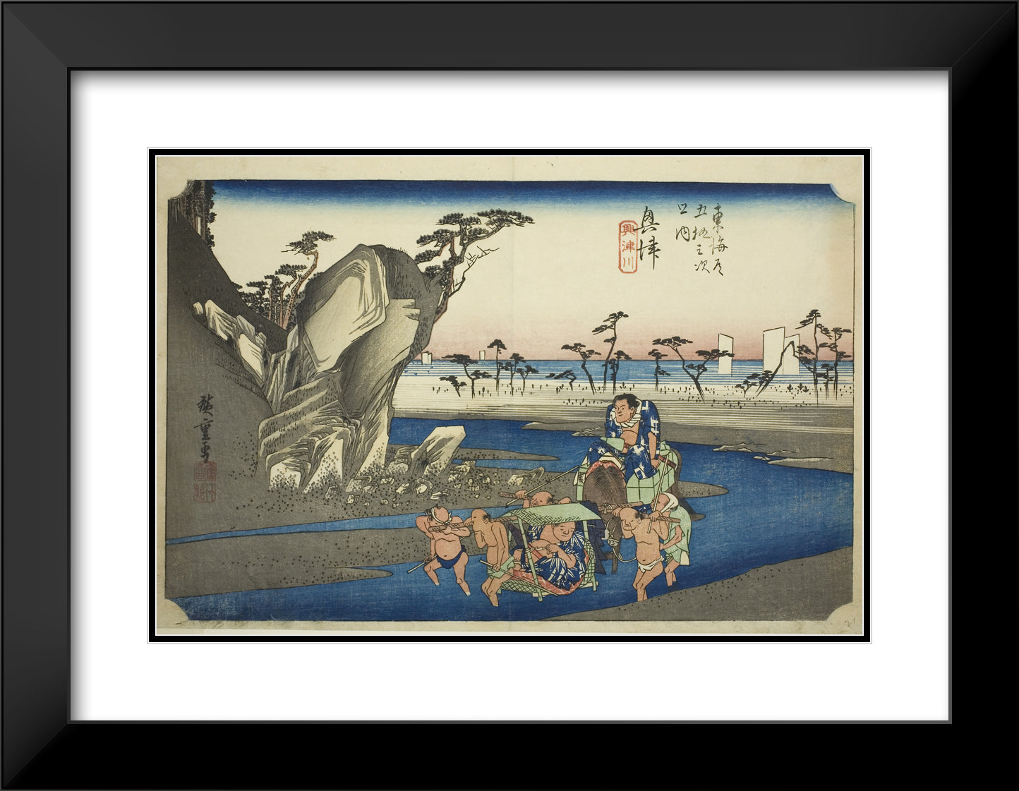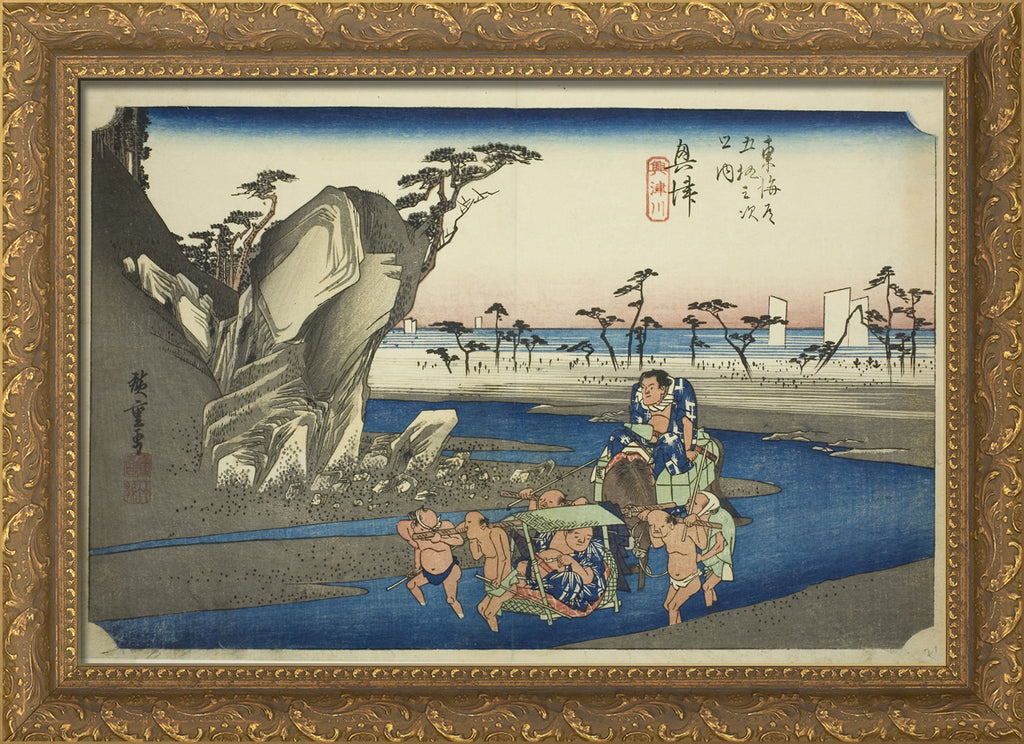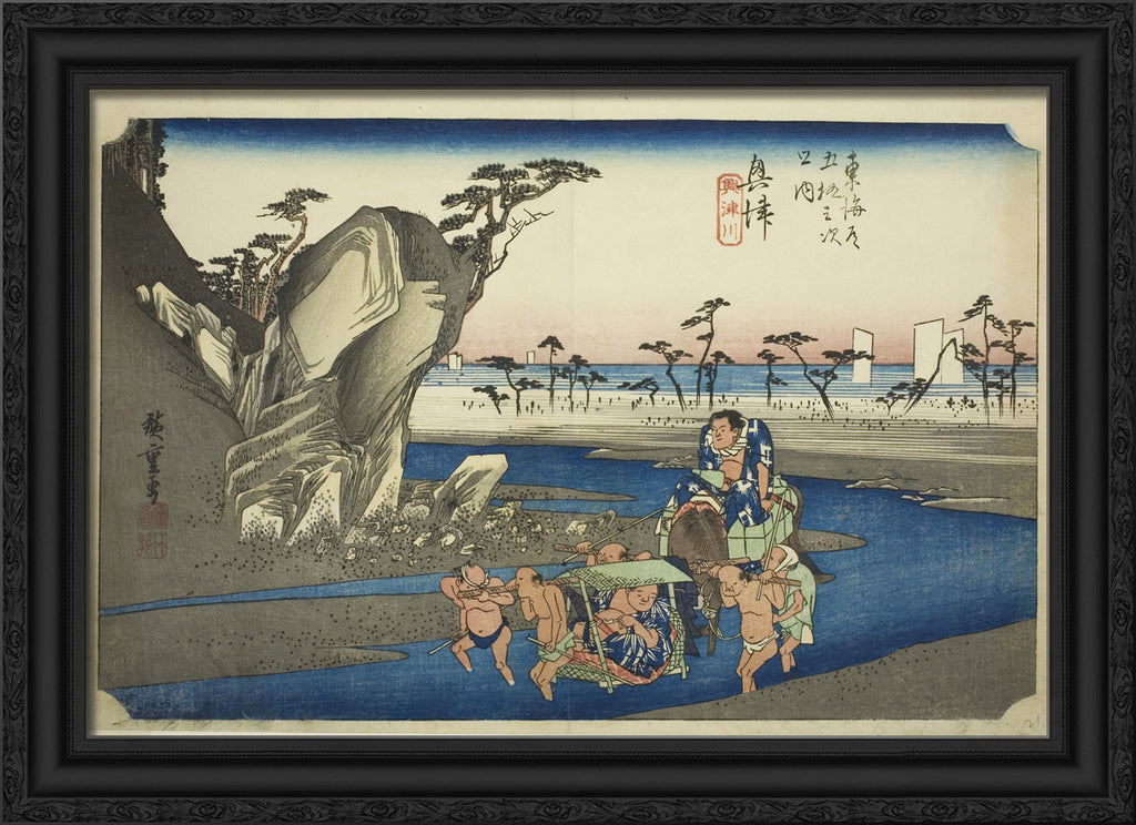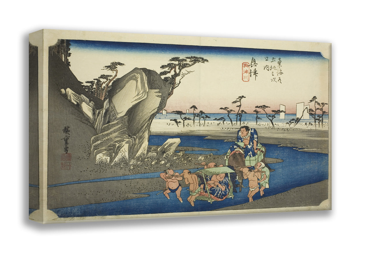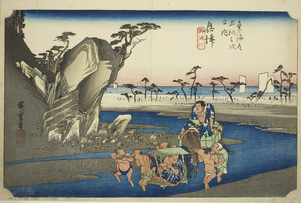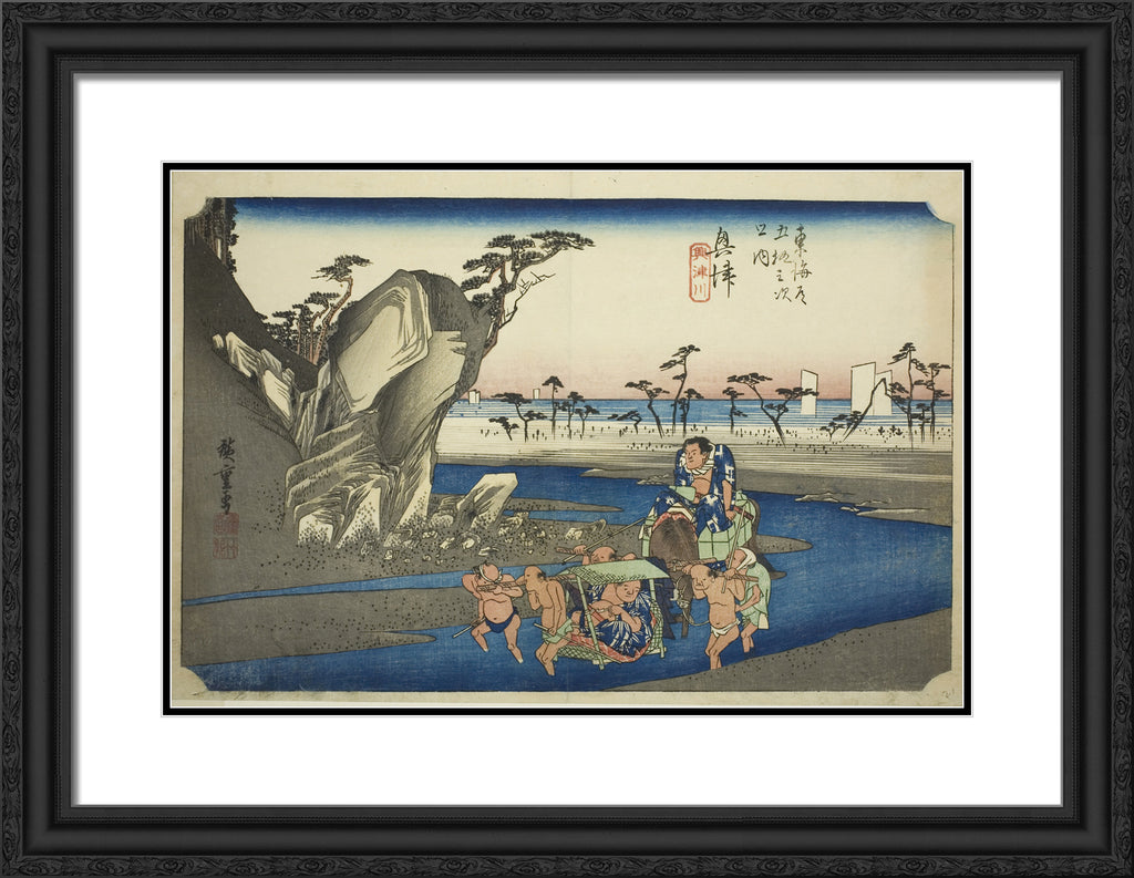 / Okitsu: The Okitsu River (Okitsu, Okitsugawa), from the series "Fifty-three Stations of the Tokaido Road (Tokaido gojusan tsugi no uchi)," also known as the Hoeido Tokaido by Utagawa Hiroshige