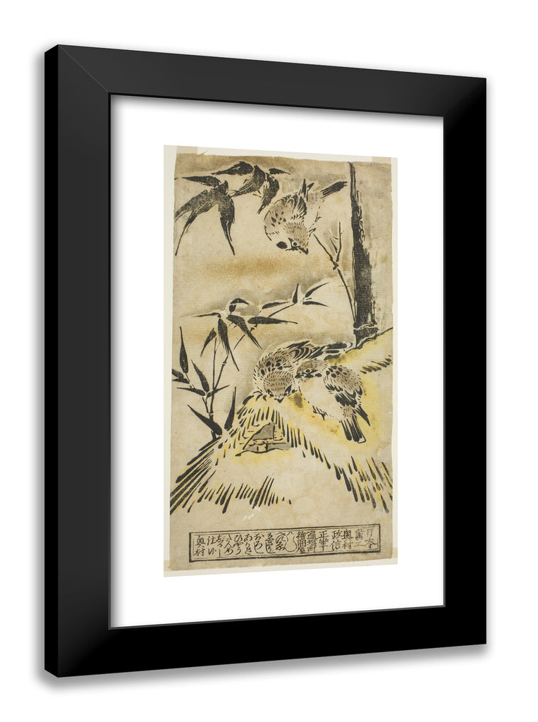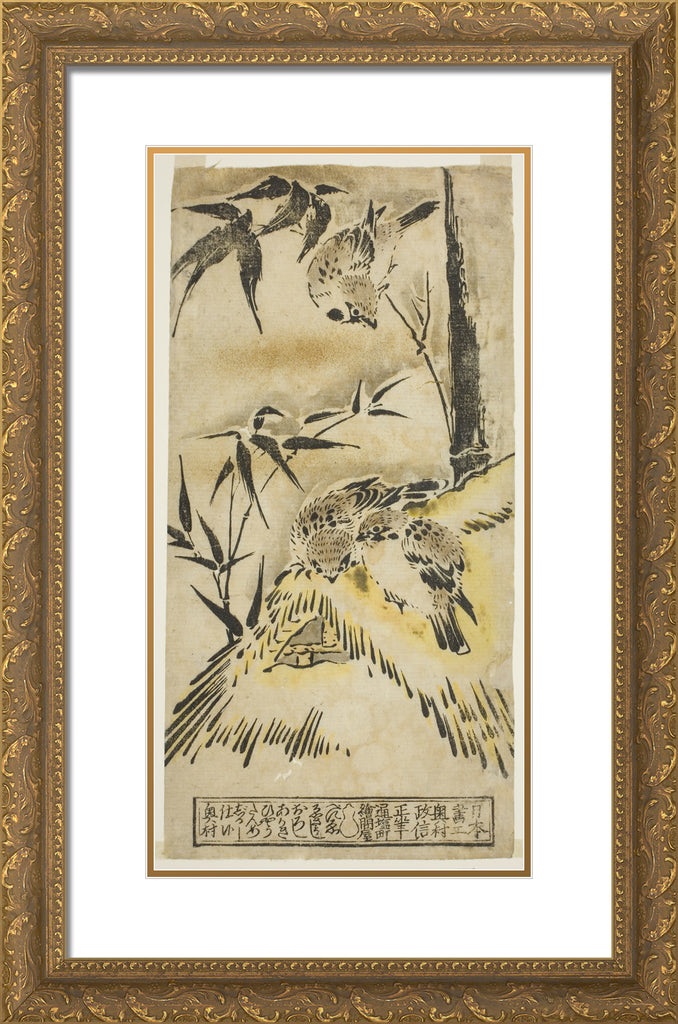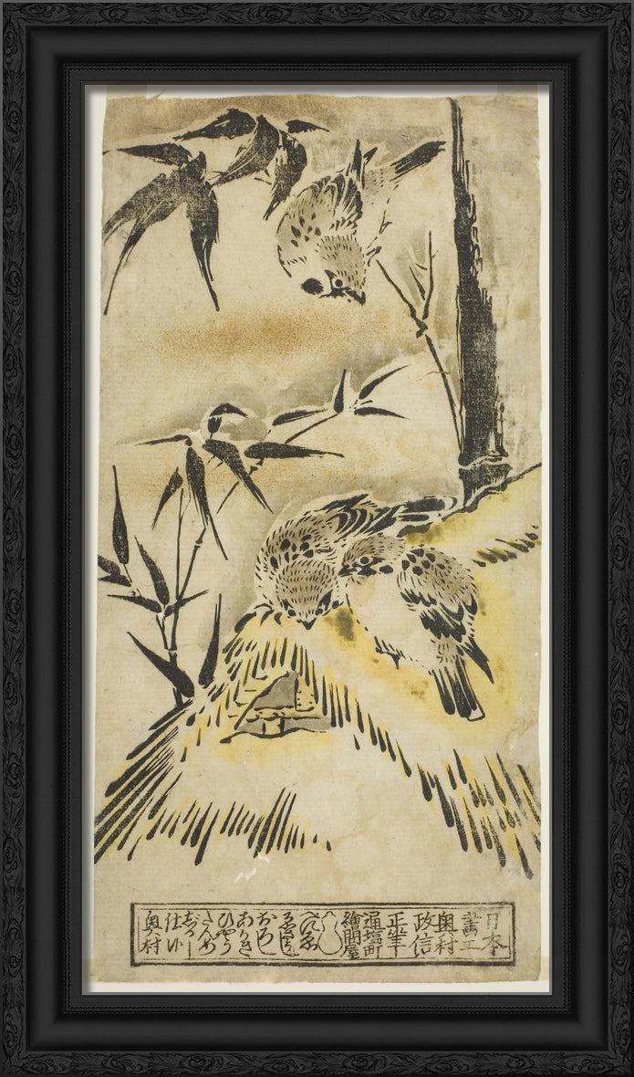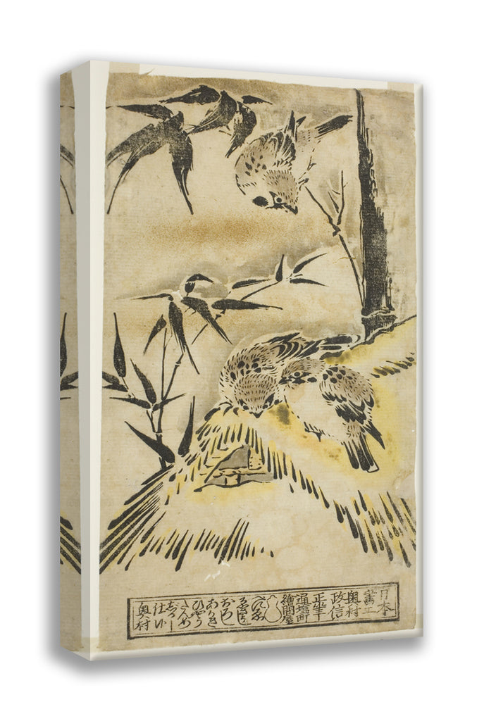 • Sparrows, Thatched Roof, and Bamboo by Okumura Masanobu