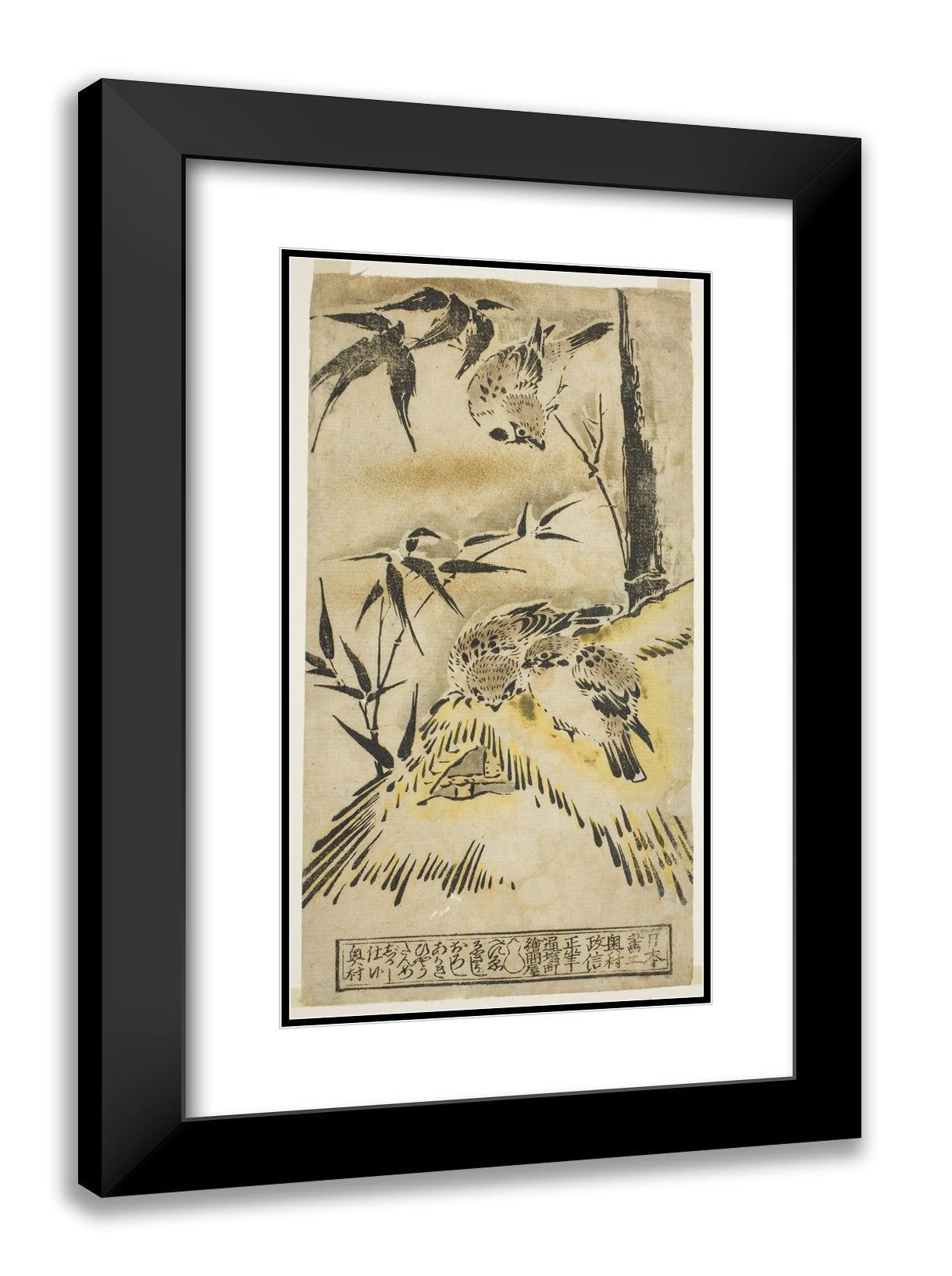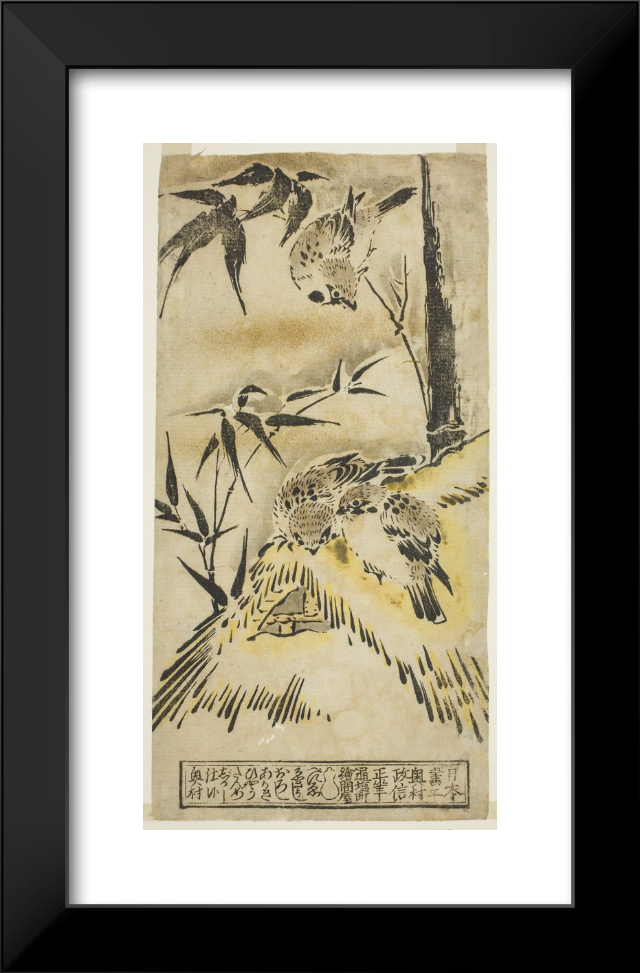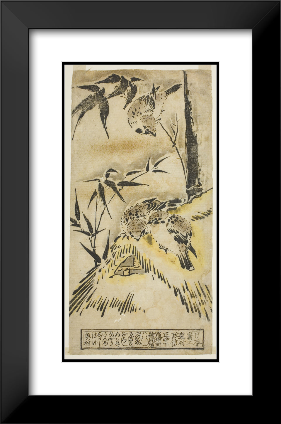 • Sparrows, Thatched Roof, and Bamboo by Okumura Masanobu