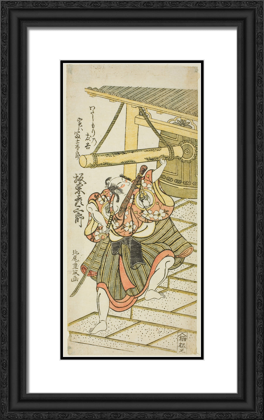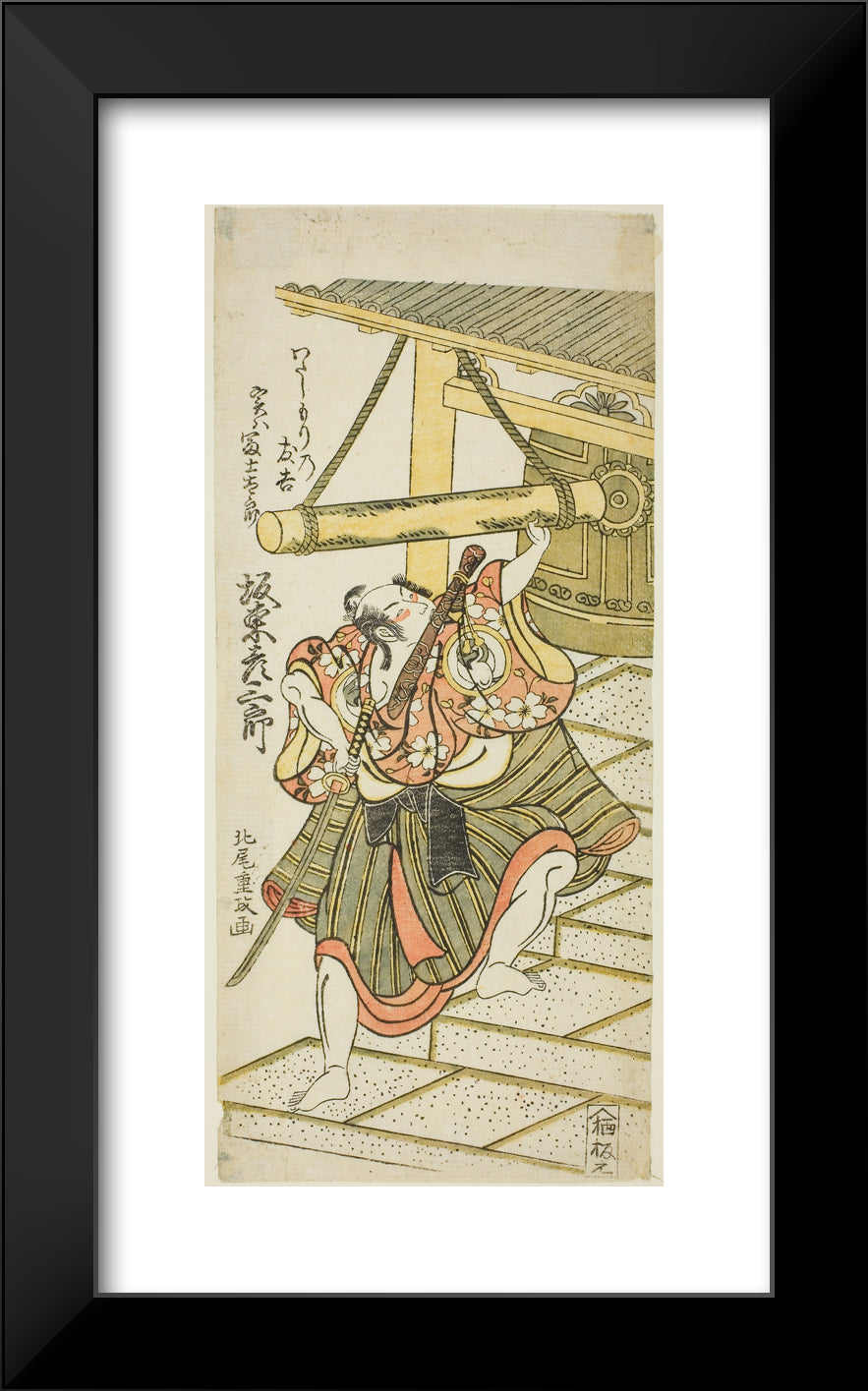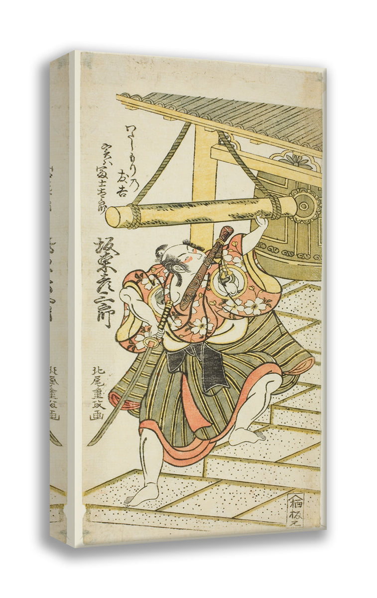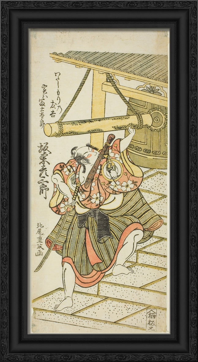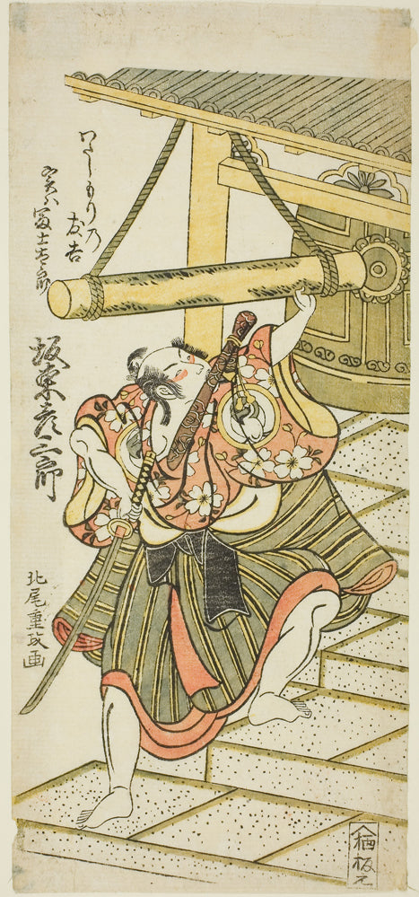 The Actor Bando Hikosaburo II as Fujitaro, disguised as the ferryman Tomokichi, in the play "Shomei Mugen no Kane," performed at the Nakamura Theater in the ninth month, 1767 by Kitao Shigemasa