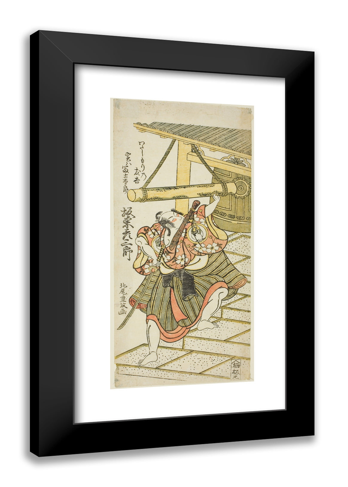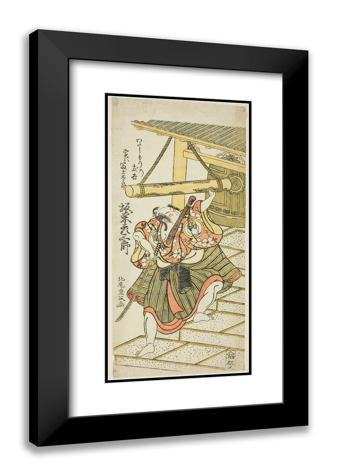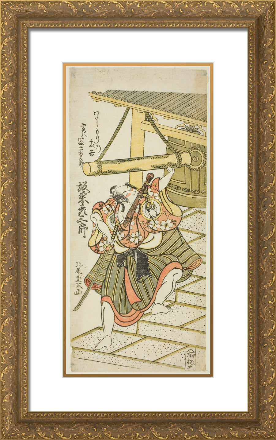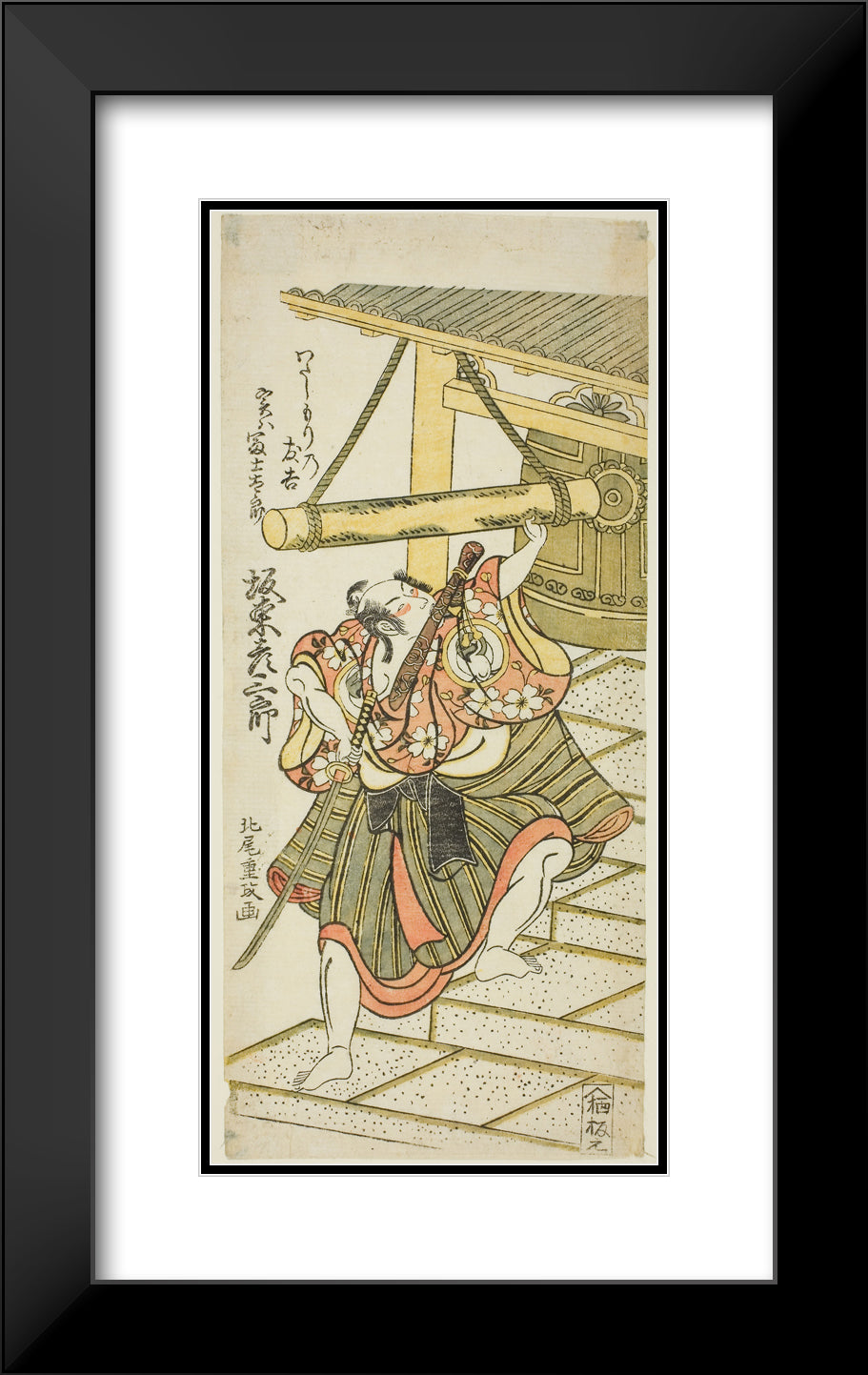 The Actor Bando Hikosaburo II as Fujitaro, disguised as the ferryman Tomokichi, in the play "Shomei Mugen no Kane," performed at the Nakamura Theater in the ninth month, 1767 by Kitao Shigemasa