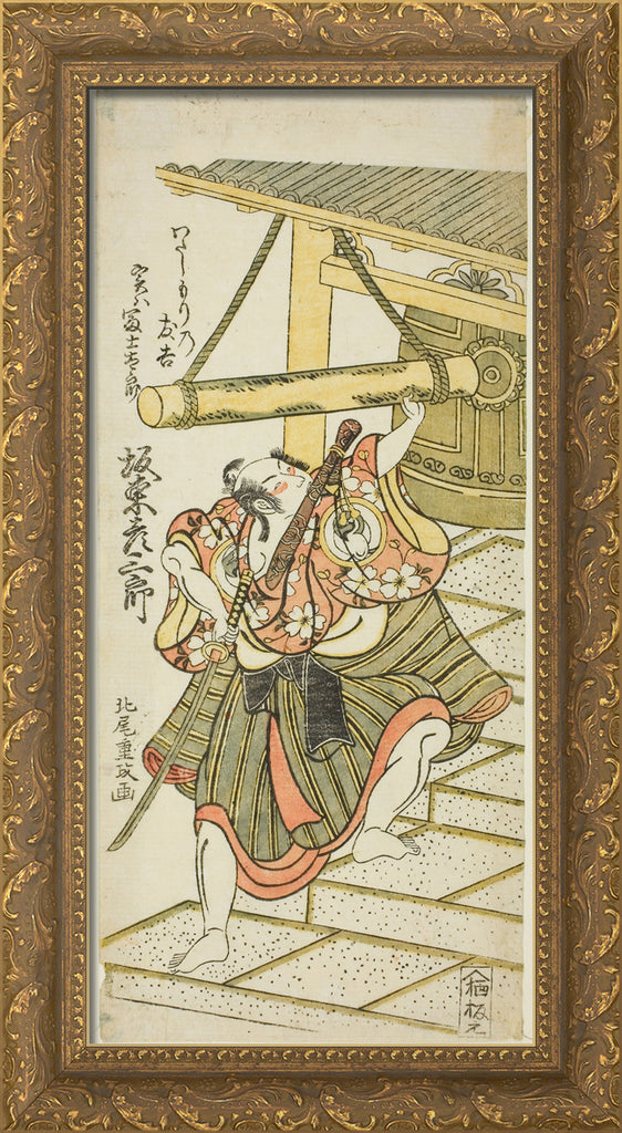• The Actor Bando Hikosaburo II as Fujitaro, disguised as the ferryman Tomokichi, in the play "Shomei Mugen no Kane," performed at the Nakamura Theater in the ninth month, 1767 by Kitao Shigemasa
