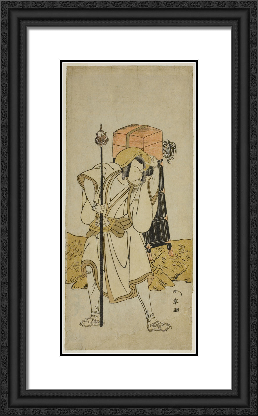 / The Actor Ichikawa Danjuro V as Moriya no Daijin Disguised as Rokuju-rokubu in the Play Miya-bashira Iwao no Butai, Performed at the Morita Theater in the Seventh Month, 1773 by Katsukawa Shunsho