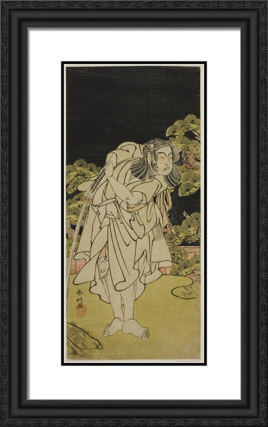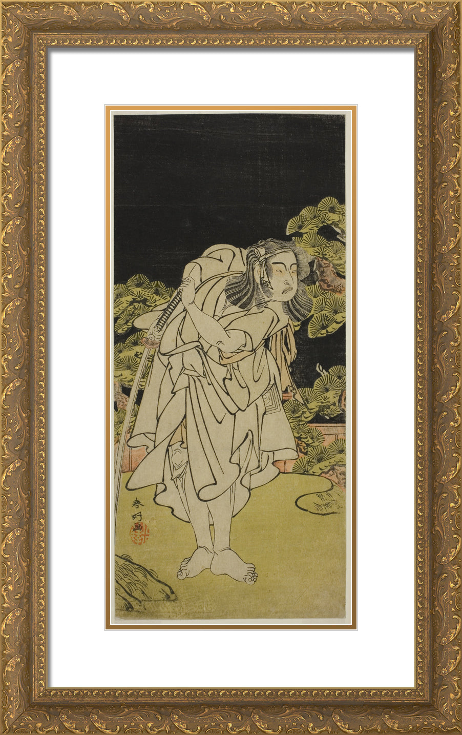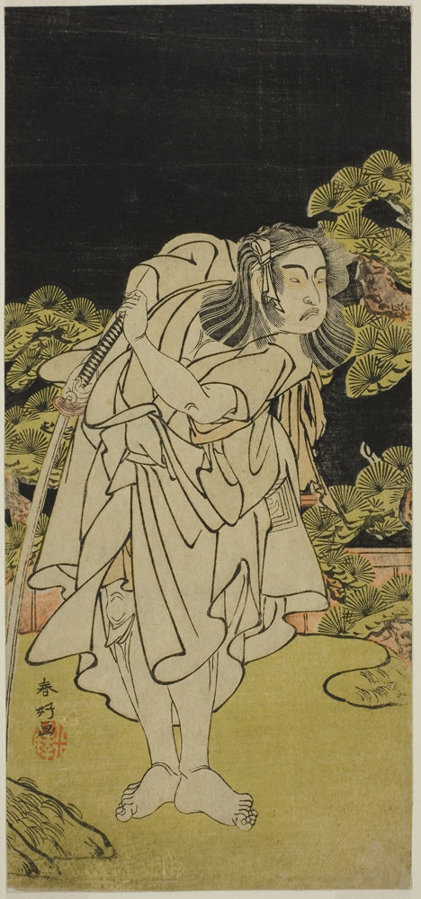 / The Actor Ichikawa Yaozo II as Soga no Dozaburo (?) in the Play Kamuri Kotoba Soga no Yukari (?), Performed at the Ichimura Theater (?) in the First Month, 1776 (?) by Katsukawa Shunko