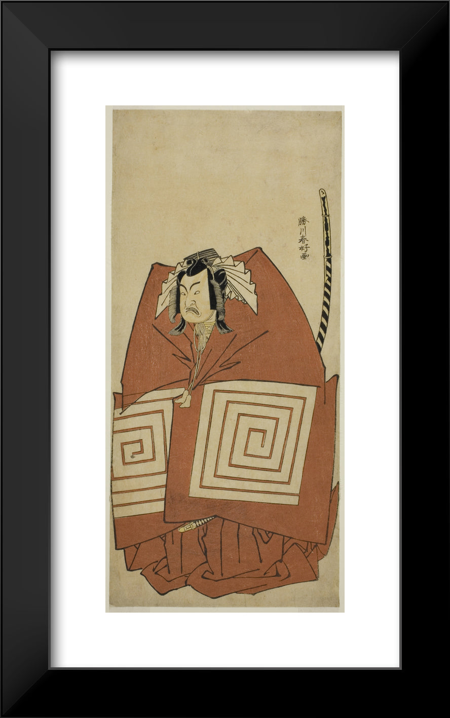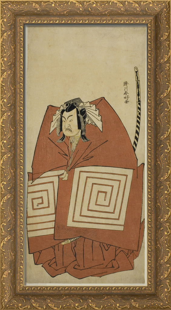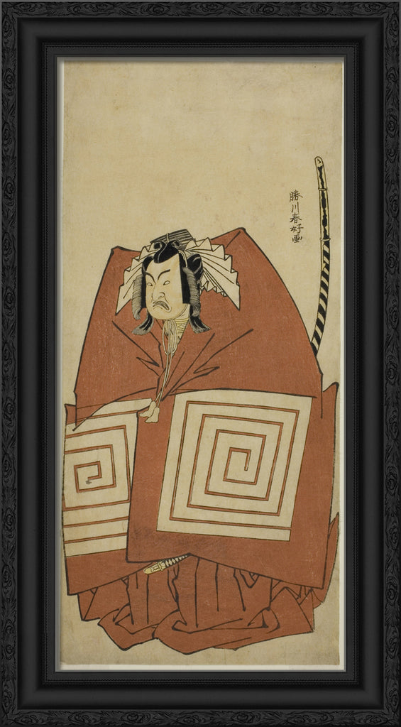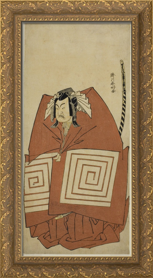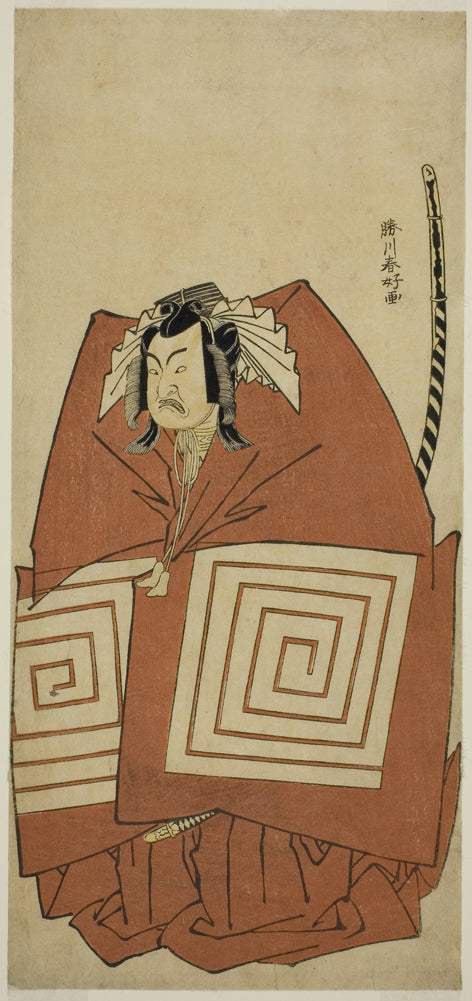 / The Actor Ichimura Uzaemon IX as Araoka Hachiro in the Play Sakimasu ya Ume no Kachidoki, Performed at the Ichimura Theater in the Eleventh Month, 1778 by Katsukawa Shunko