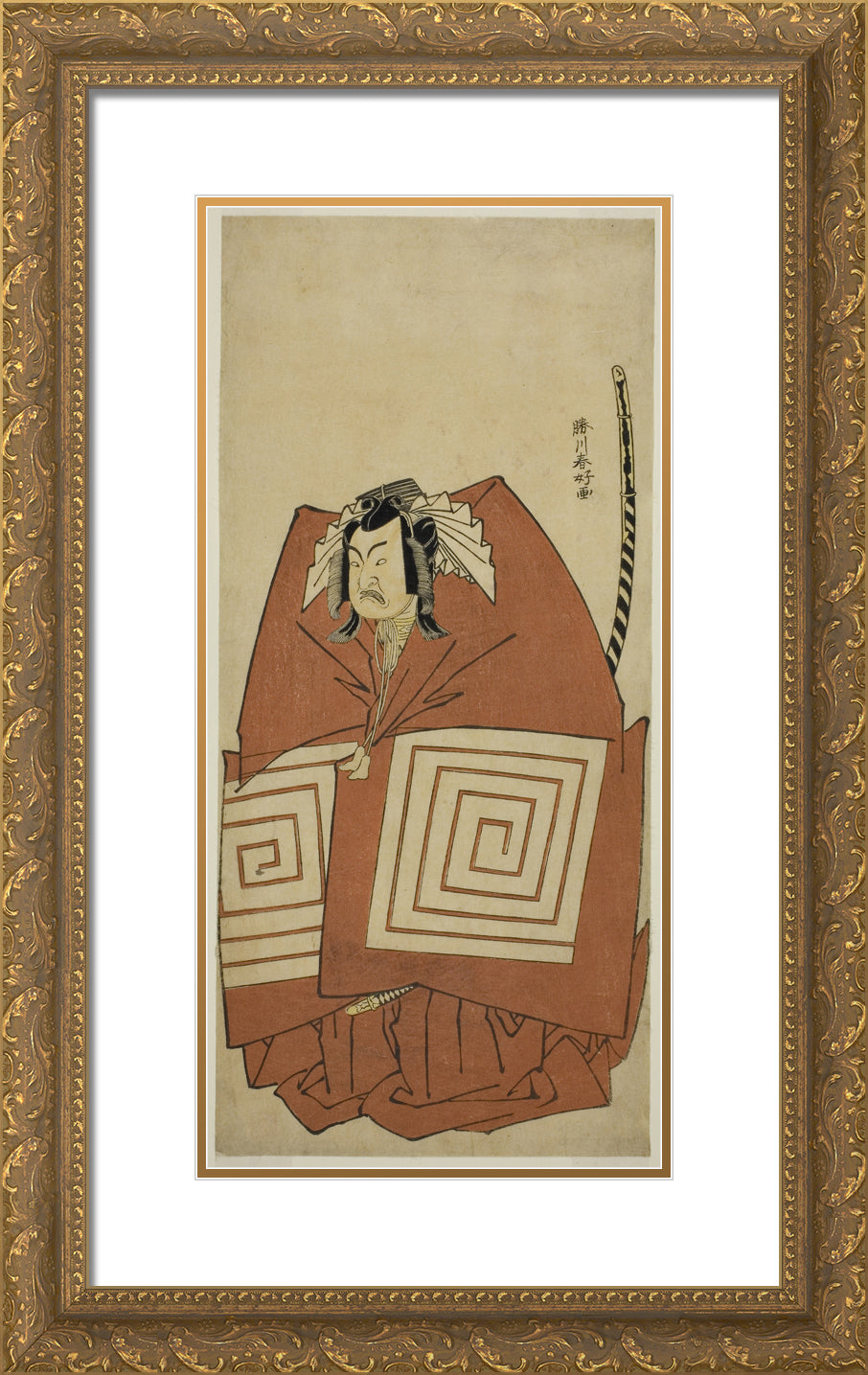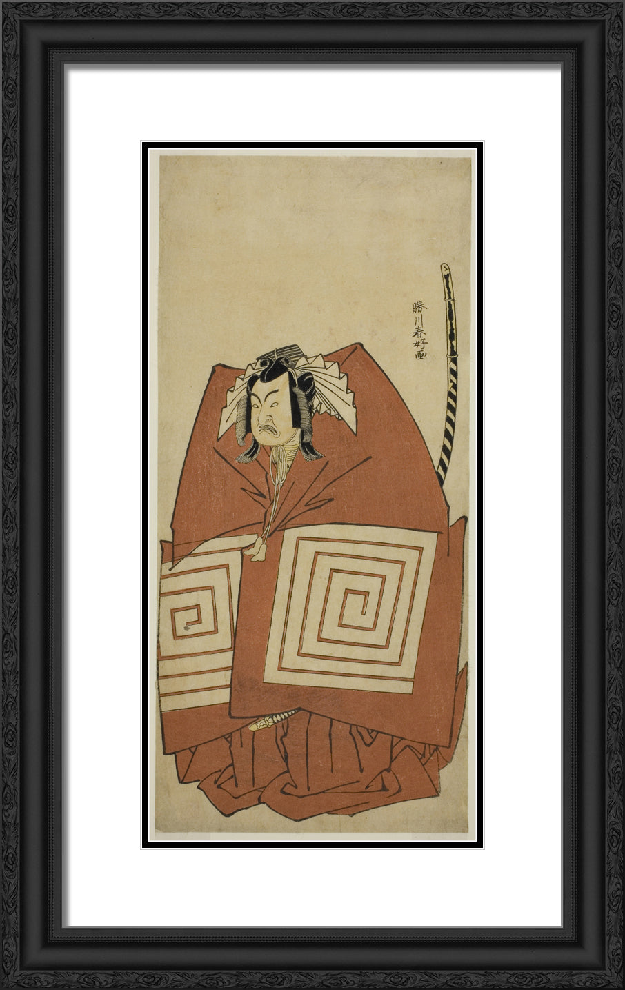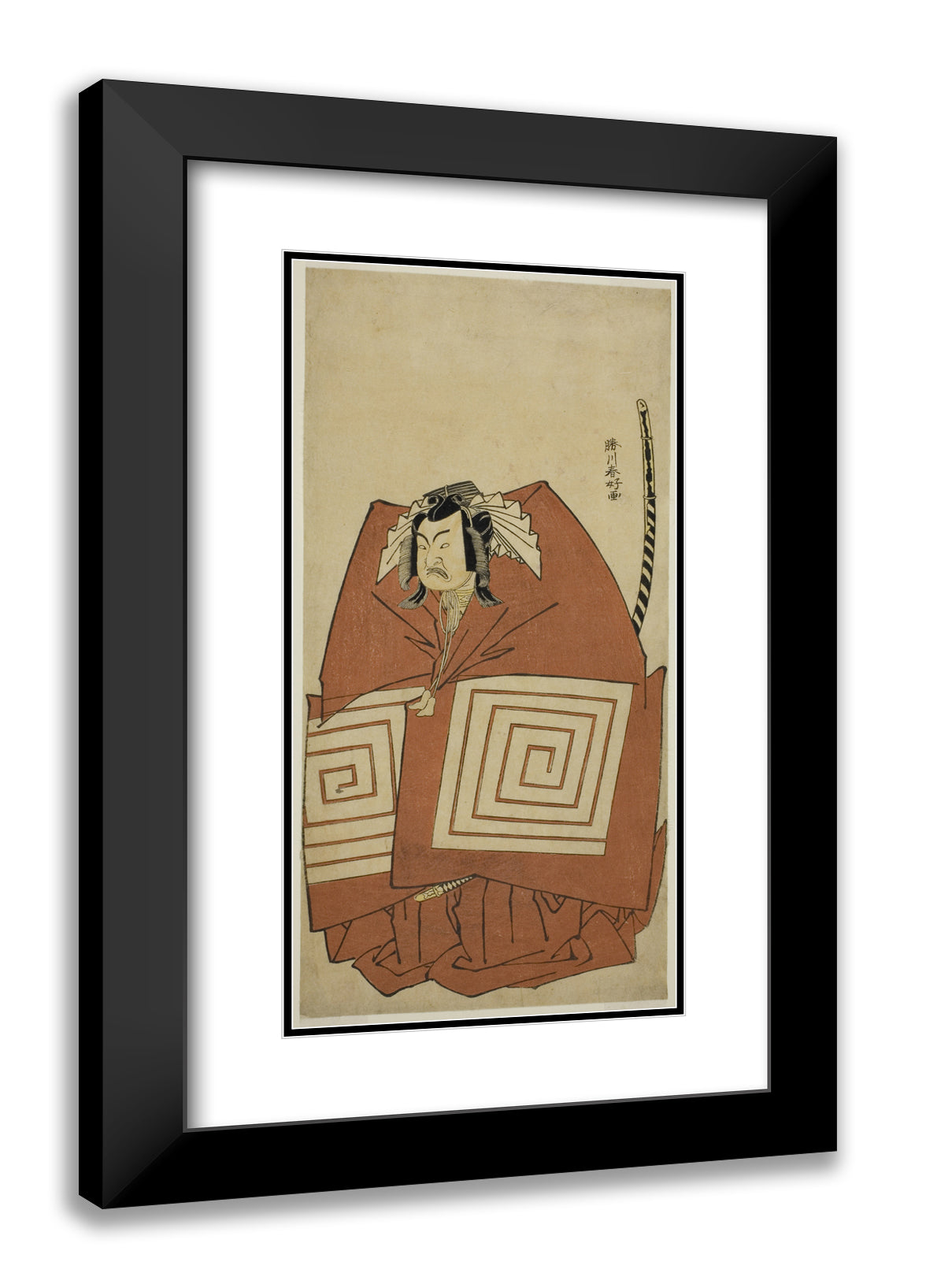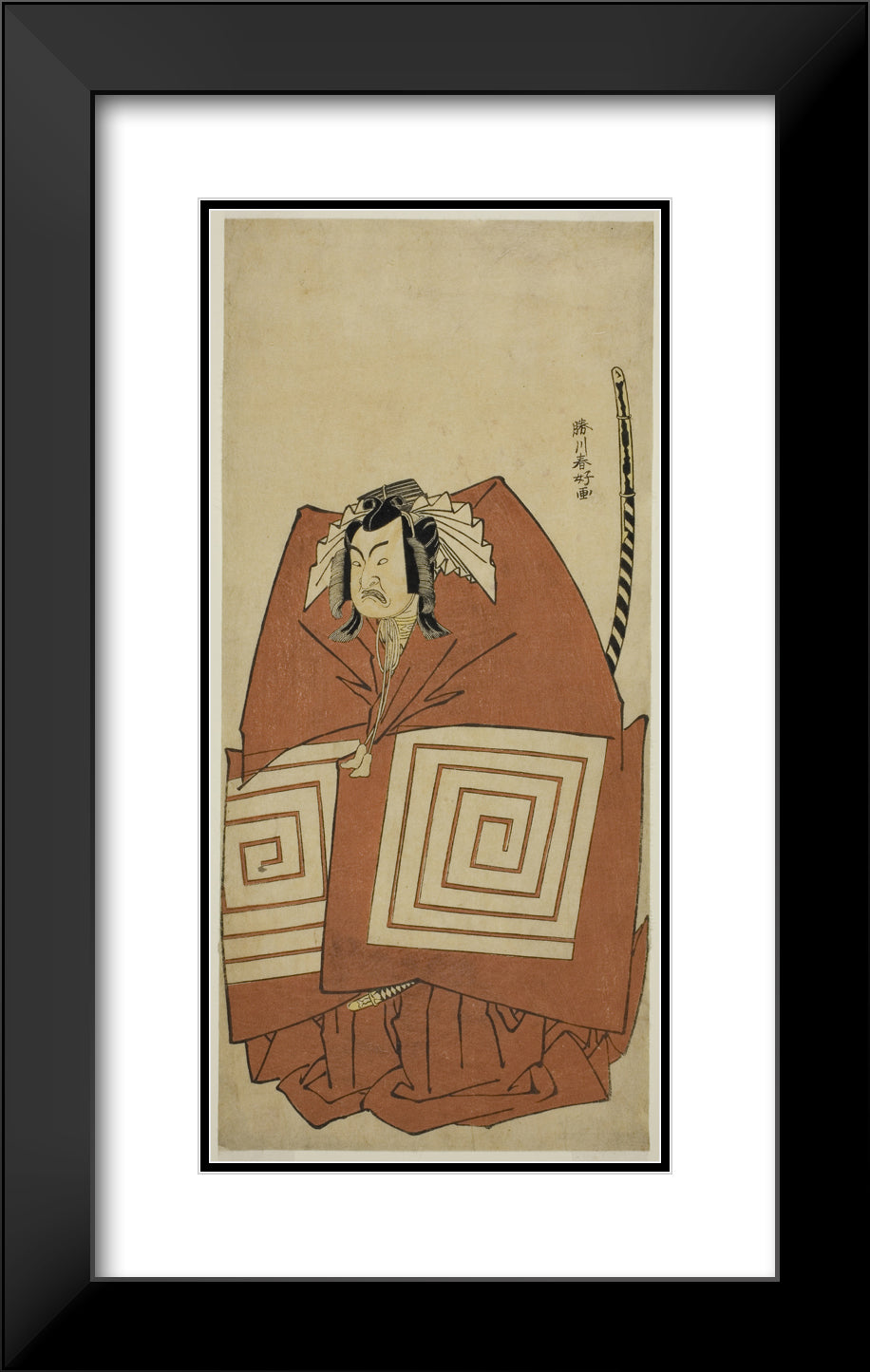 / The Actor Ichimura Uzaemon IX as Araoka Hachiro in the Play Sakimasu ya Ume no Kachidoki, Performed at the Ichimura Theater in the Eleventh Month, 1778 by Katsukawa Shunko