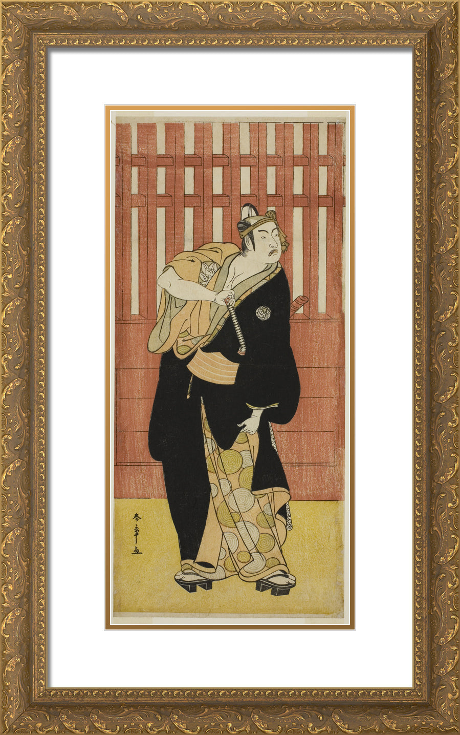 / The Actor Ichimura Uzaemon IX as Soga no Goro Tokimune Disguised as Agemaki no Sukeroku in the Play Sukeroku Yukari no Edo-zakura, Performed at the Ichimura Theater in the Fifth Month, 1782 by Katsukawa Shunsho