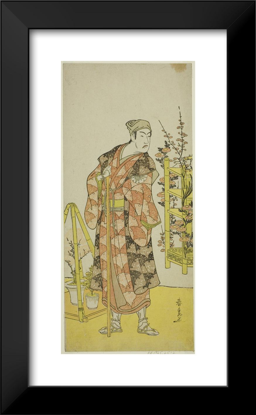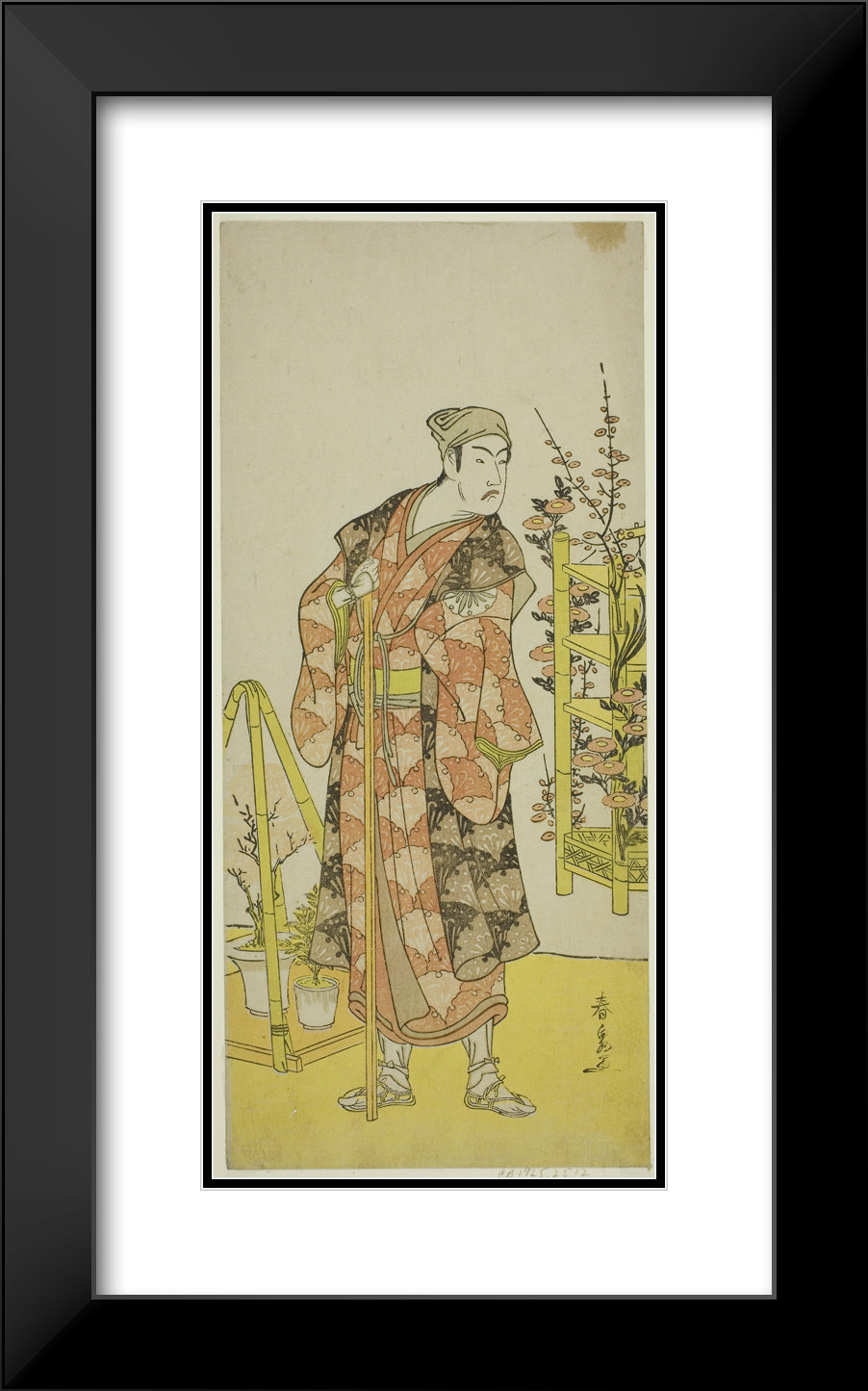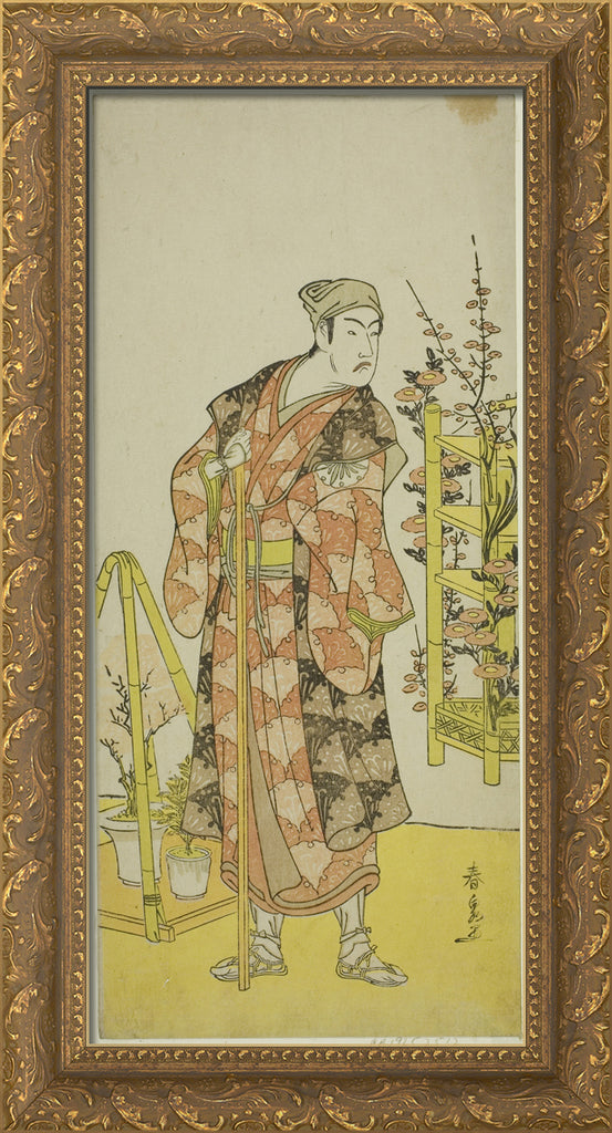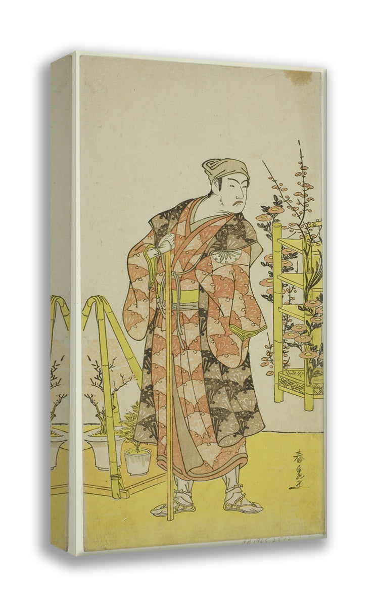 / The Actor Matsumoto Koshiro IV as the Plant Seller Awashima no Yonosuke in the Play Mukashi Otoko Yuki no Hinagata, Performed at the Ichimura Theater in the Eleventh Month, 1781 by Katsukawa Shunsen