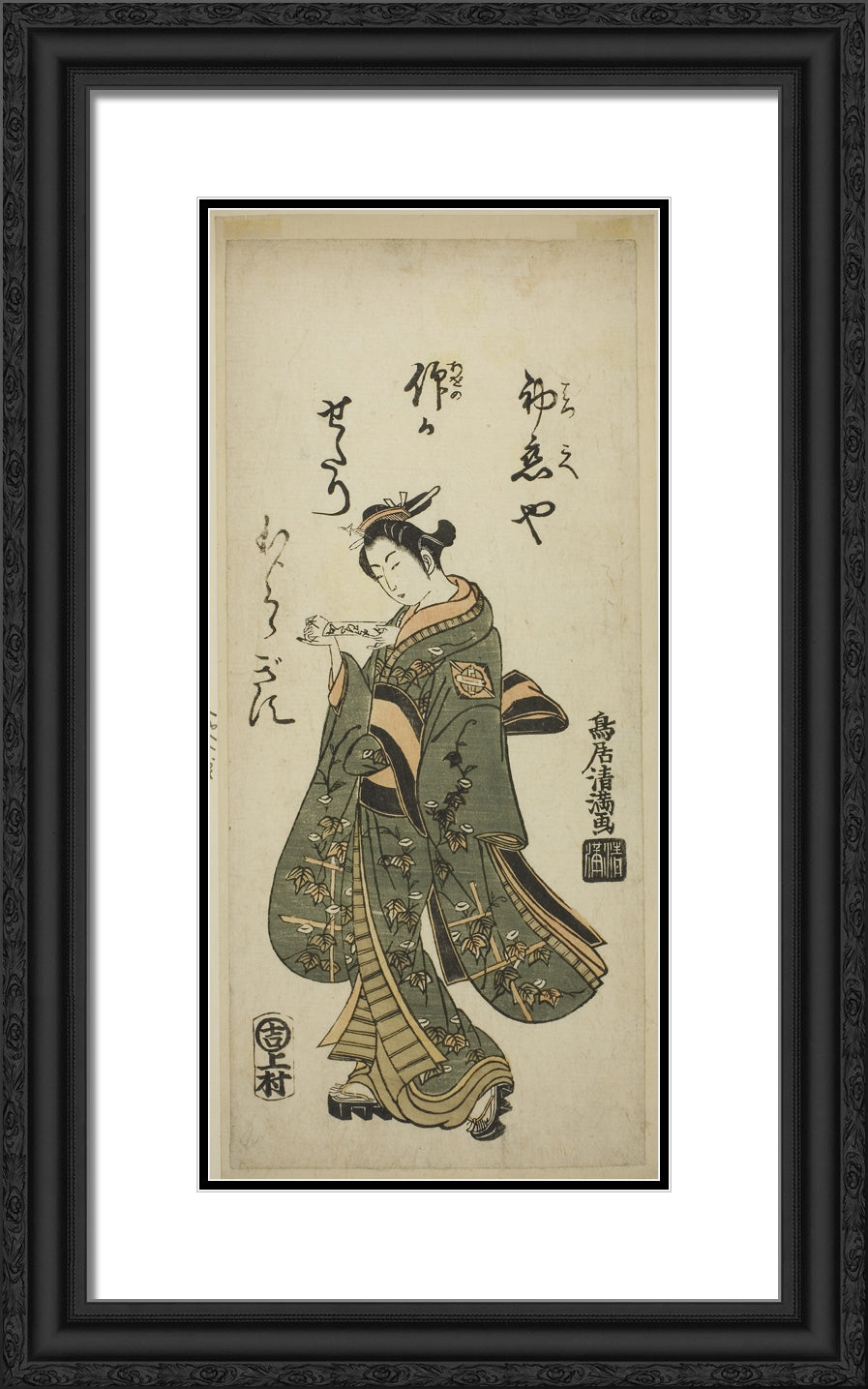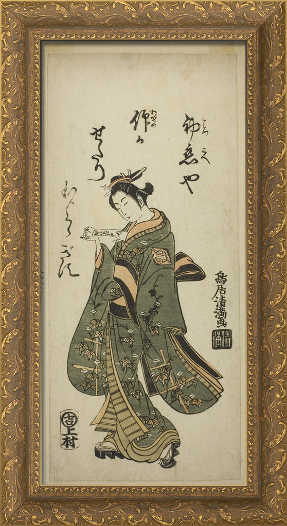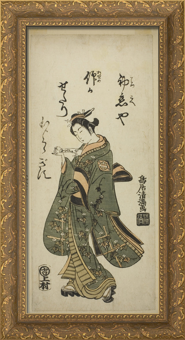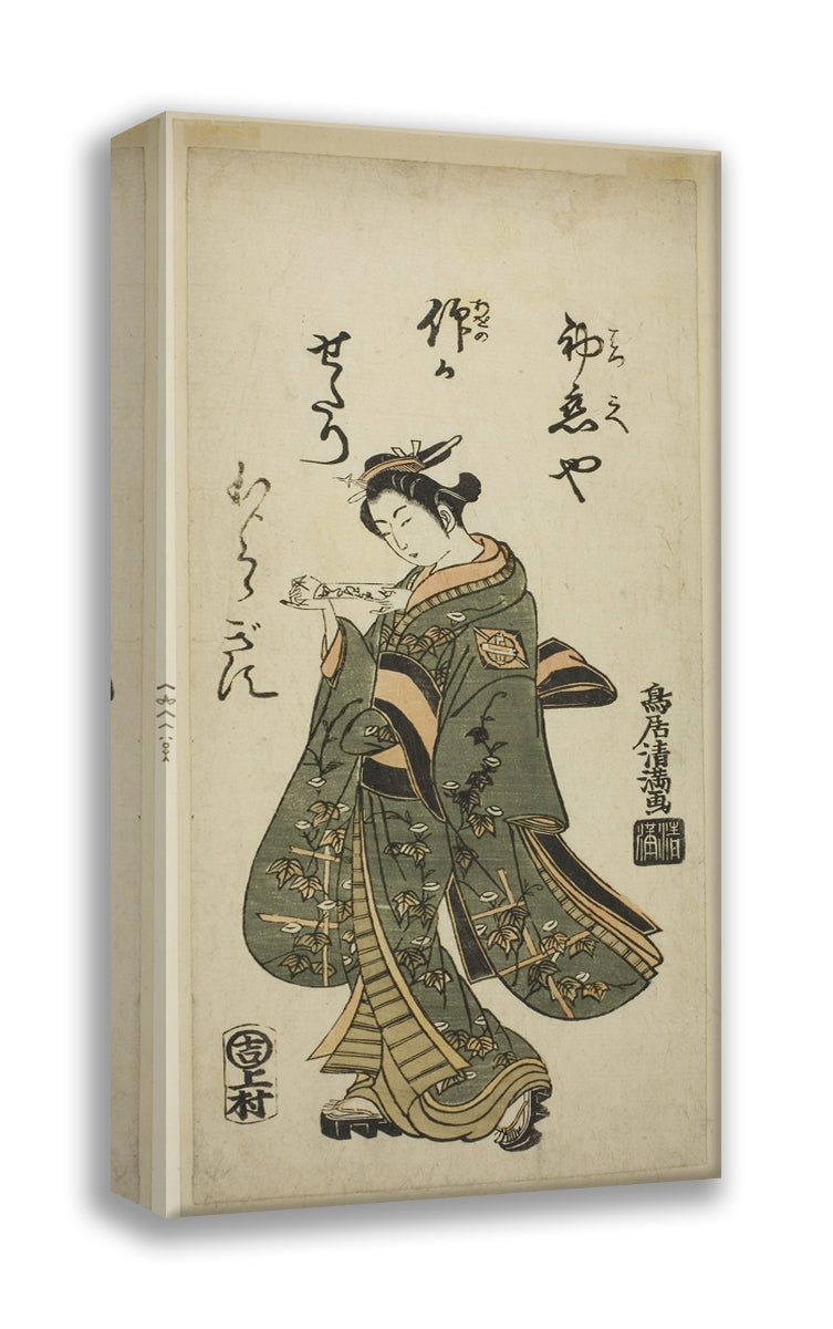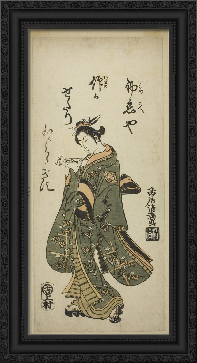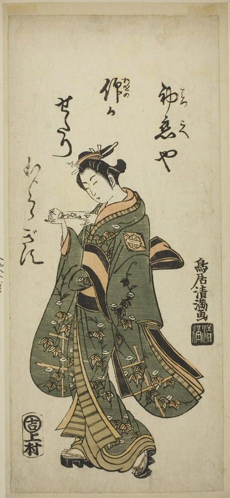 / The Actor Nakamura Matsue as Oshichi in the play "Fujibumi Sakae Soga," performed at the Ichimura Theater in the second month, 1763 by Torii Kiyomasu I