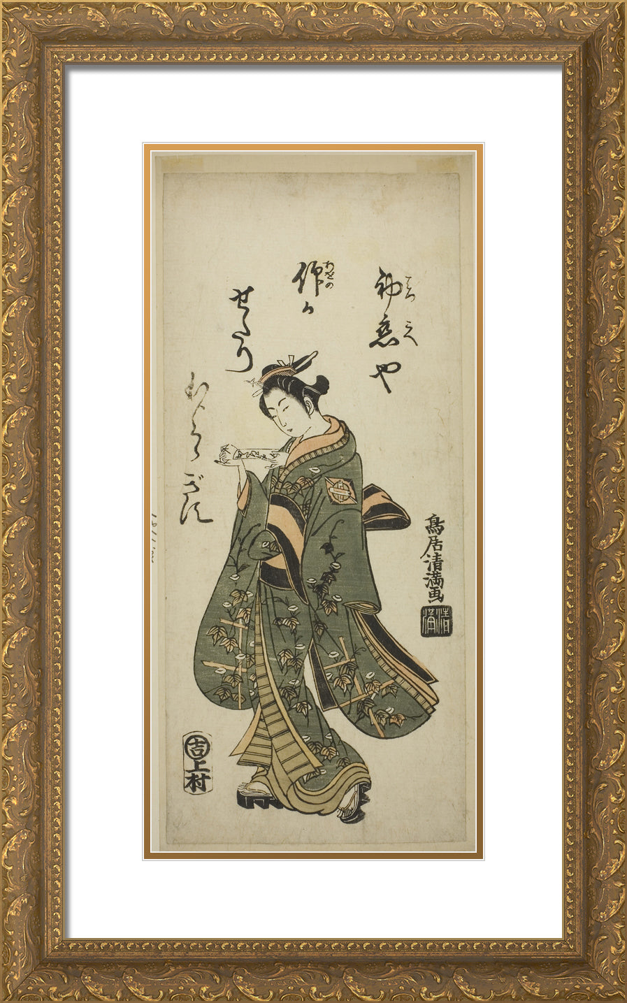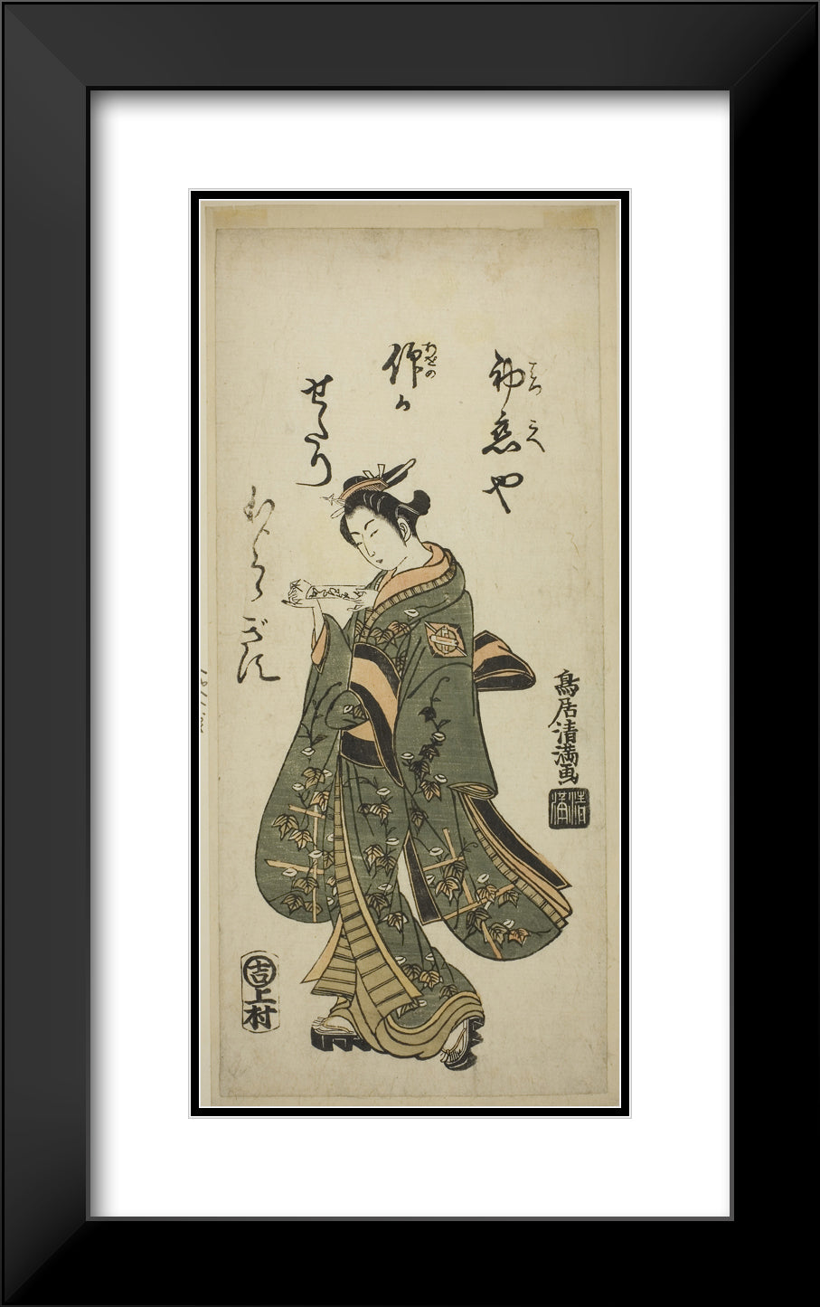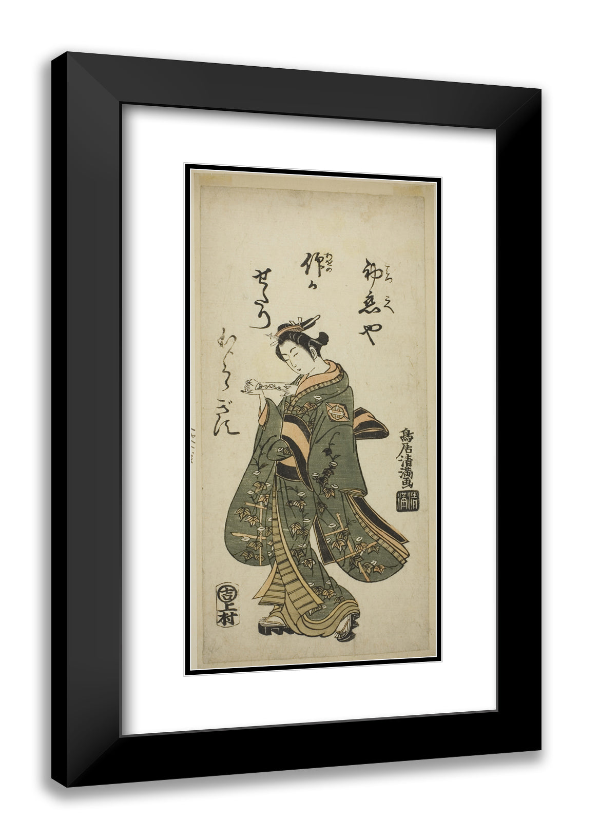 / The Actor Nakamura Matsue as Oshichi in the play "Fujibumi Sakae Soga," performed at the Ichimura Theater in the second month, 1763 by Torii Kiyomasu I