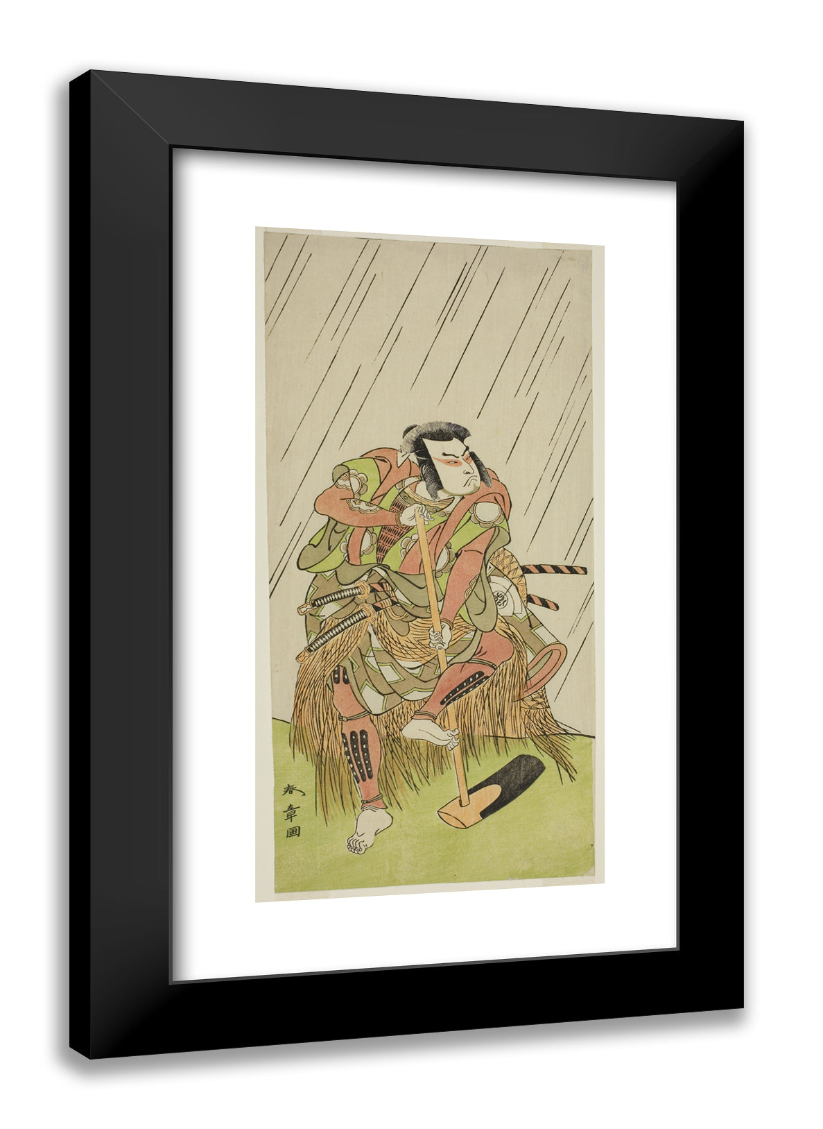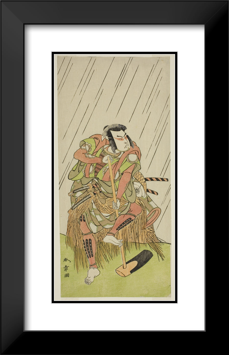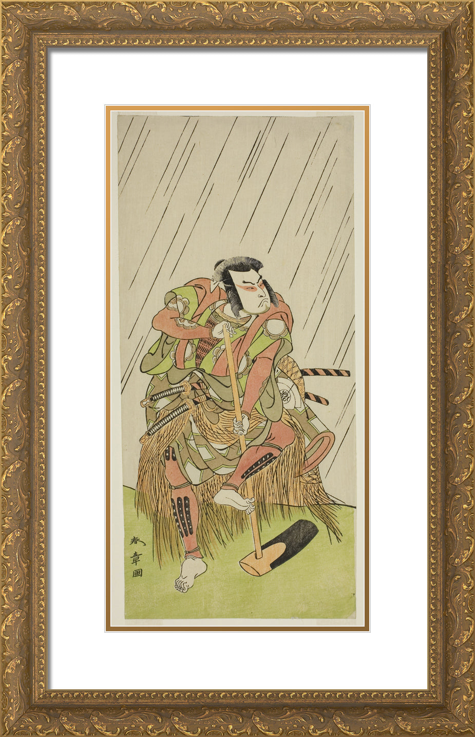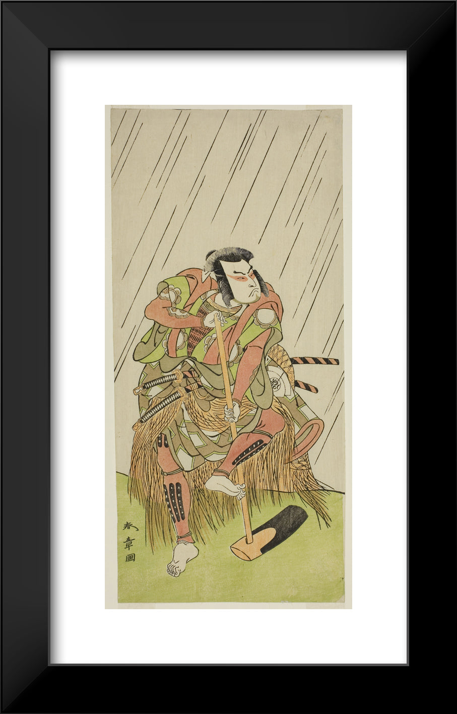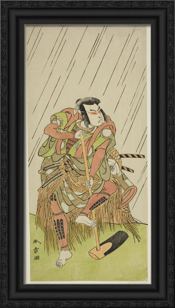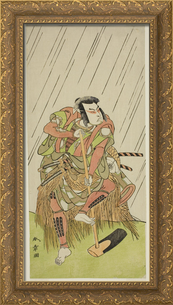 / The Actor Onoe Matsusuke I as Nakaomi Katsumi Disguised as the Farmer Datta no Nizo, in the Play Shitenno-ji Nobori Kuyo, Performed at the Ichimura Theater in the Eighth Month, 1773 by Katsukawa Shunsho